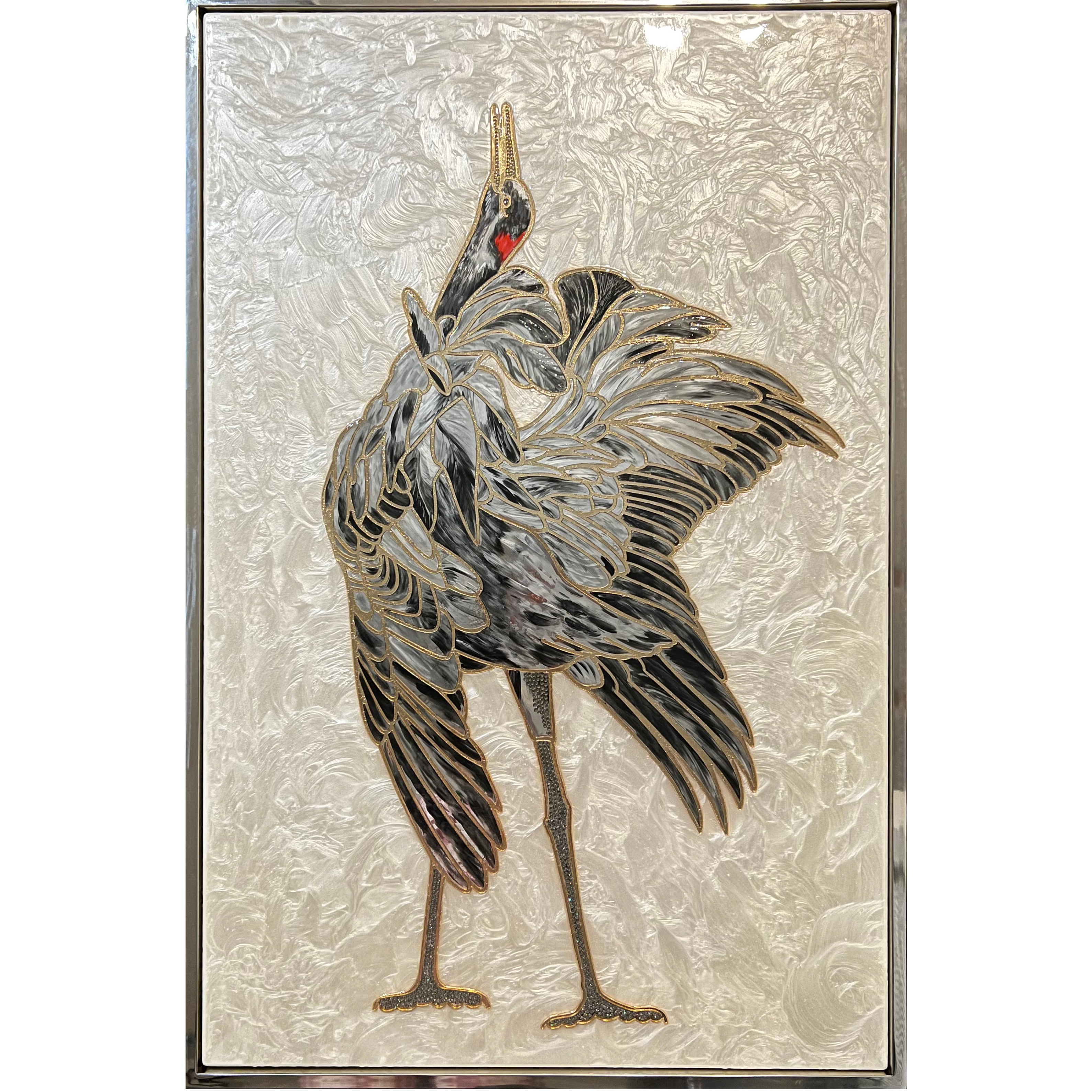 Авторское зеркально-ювелирное панно "Журавль в танце"