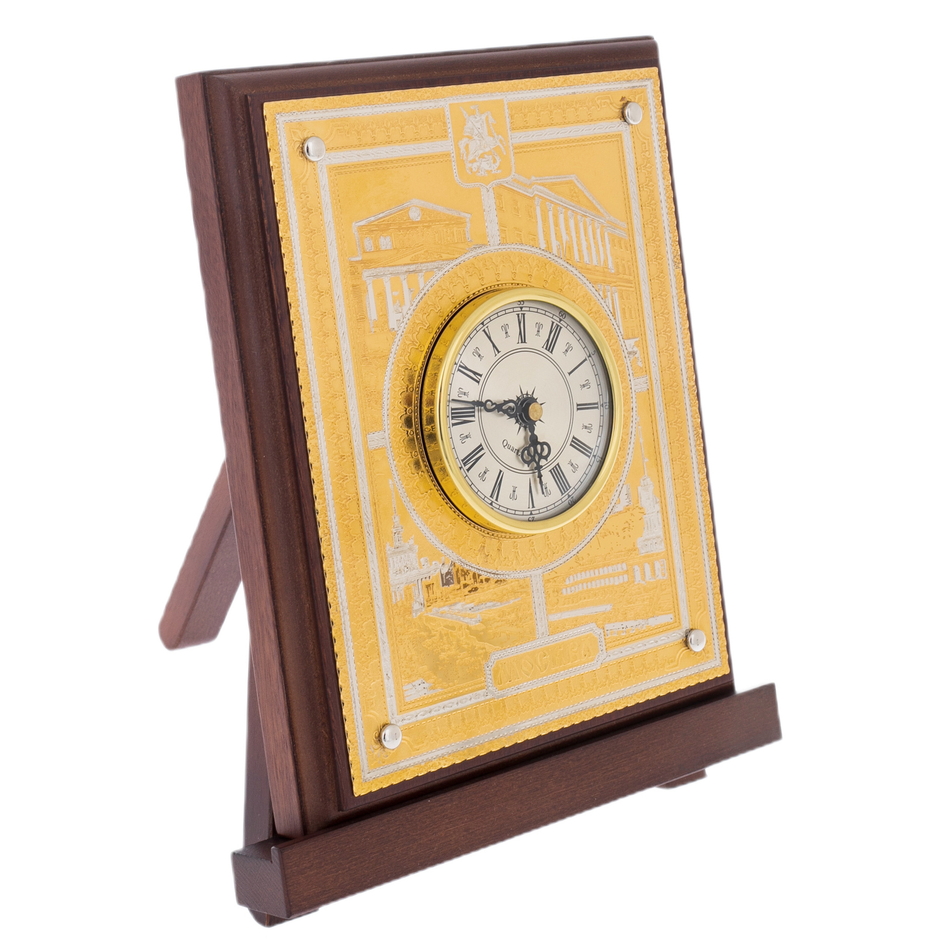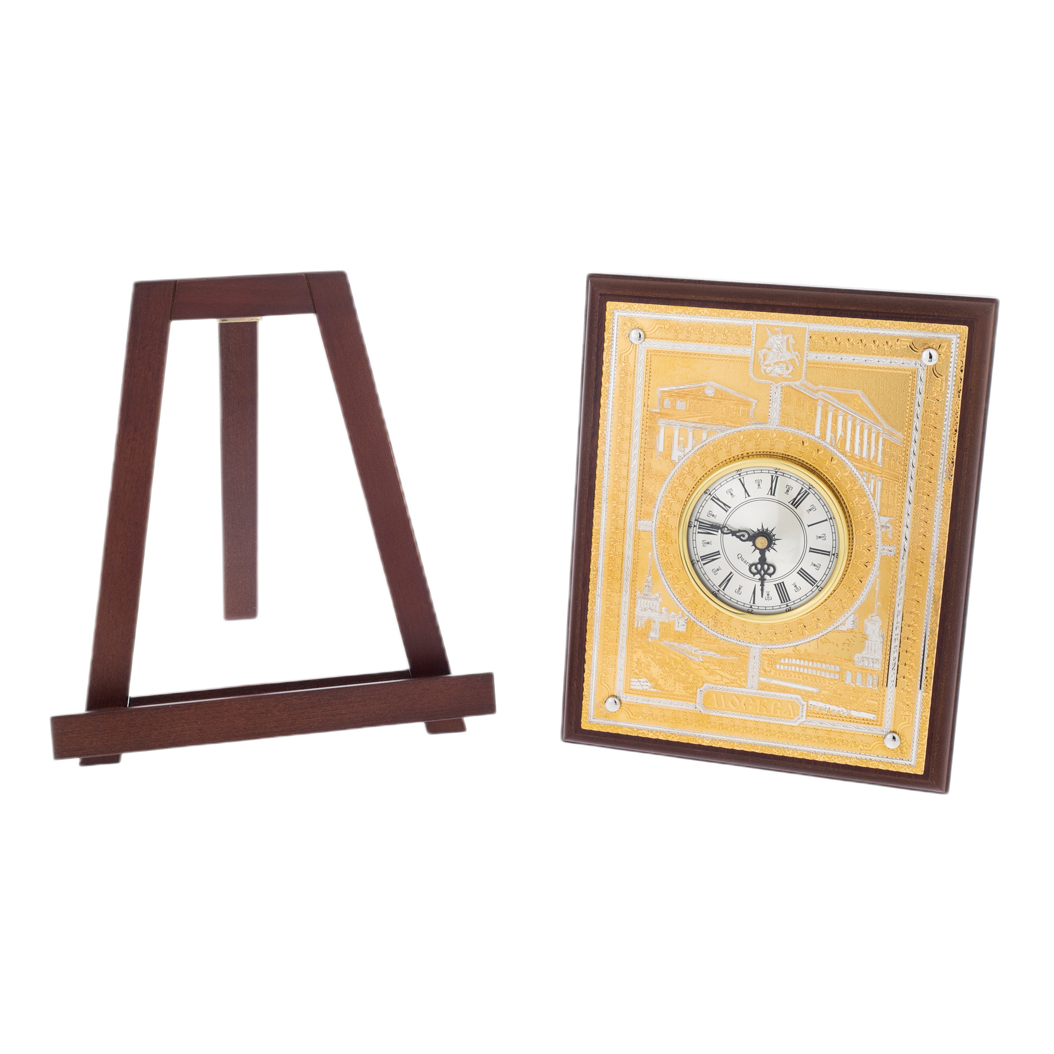 Перед вами панно-часы "Москва" — воплощение элегантности и торжества традиций ювелирного искусства. Эти часы переносят вас в мир величия столицы, где каждый элемент отсылает к знаковым символам, отражающим дух Москвы. Золотое гравирование, выполненное с тончайшей точностью, украшает корпус, демонстрируя легендарные архитектурные достопримечательности — от величественного Большого театра до древних стен Кремля.