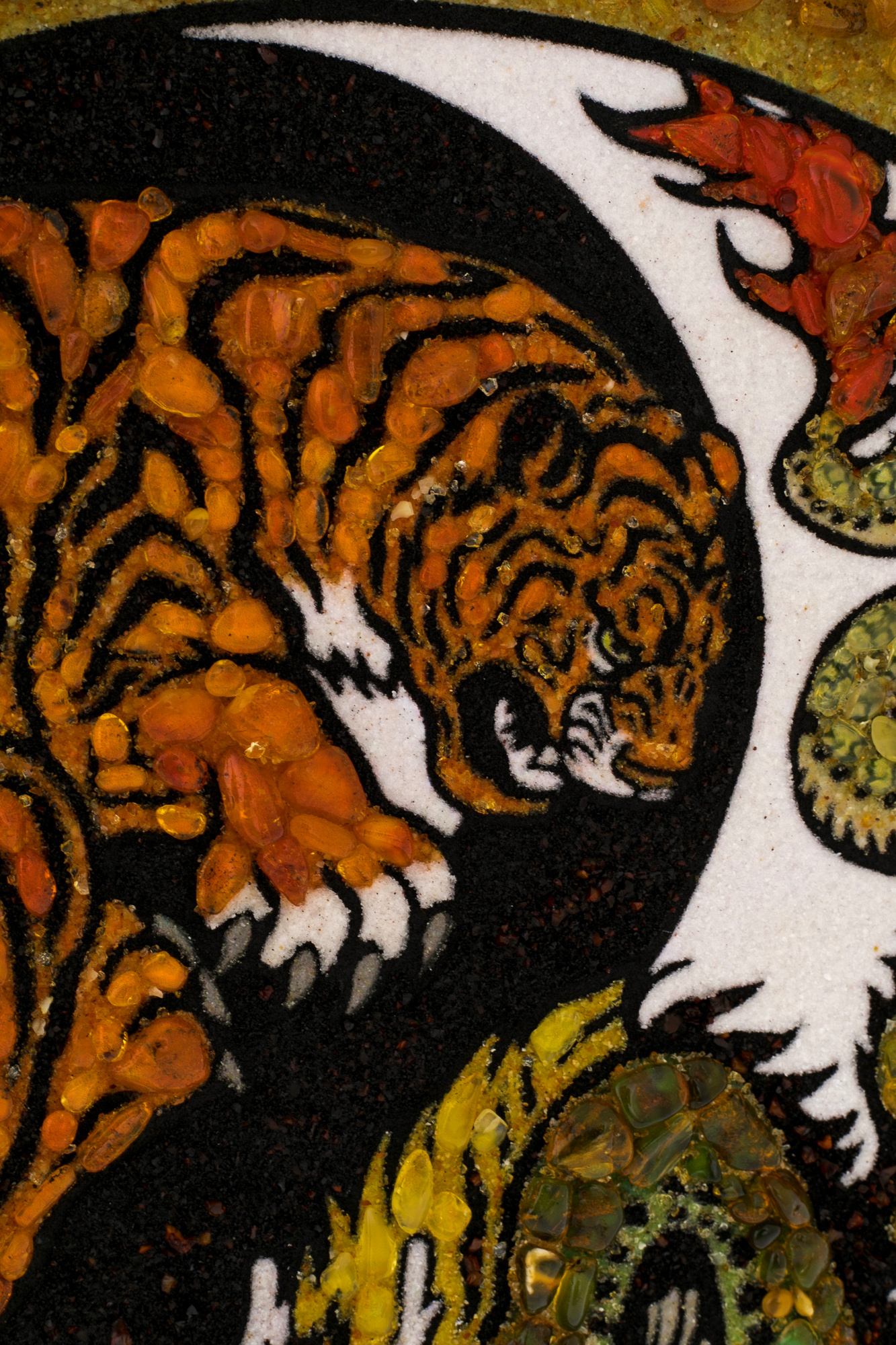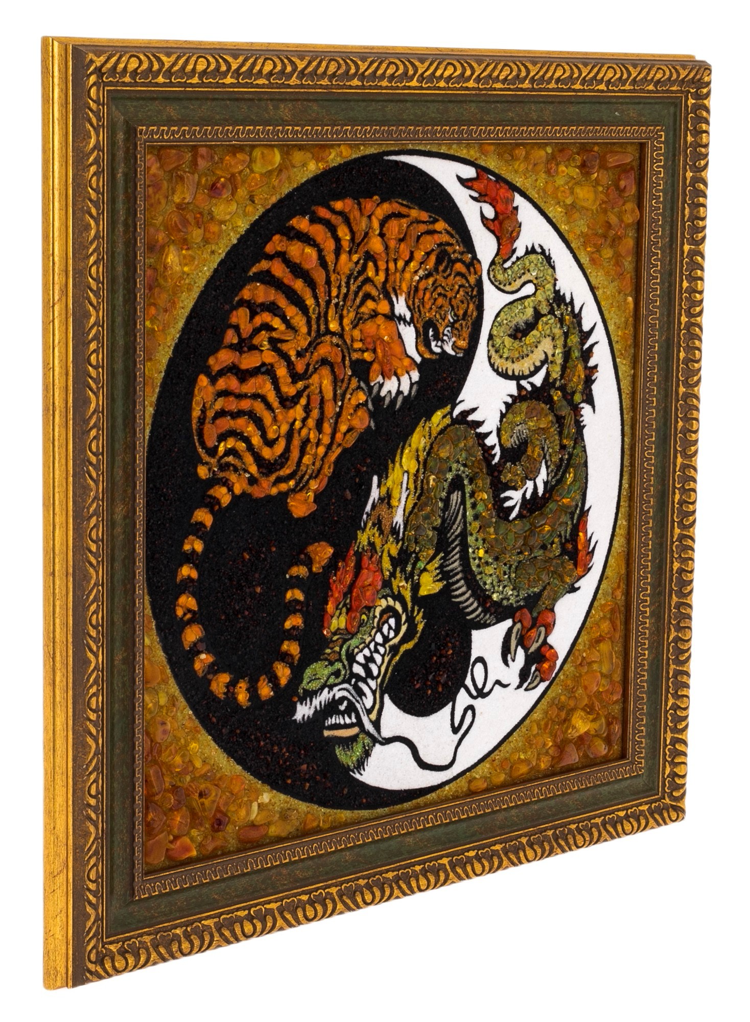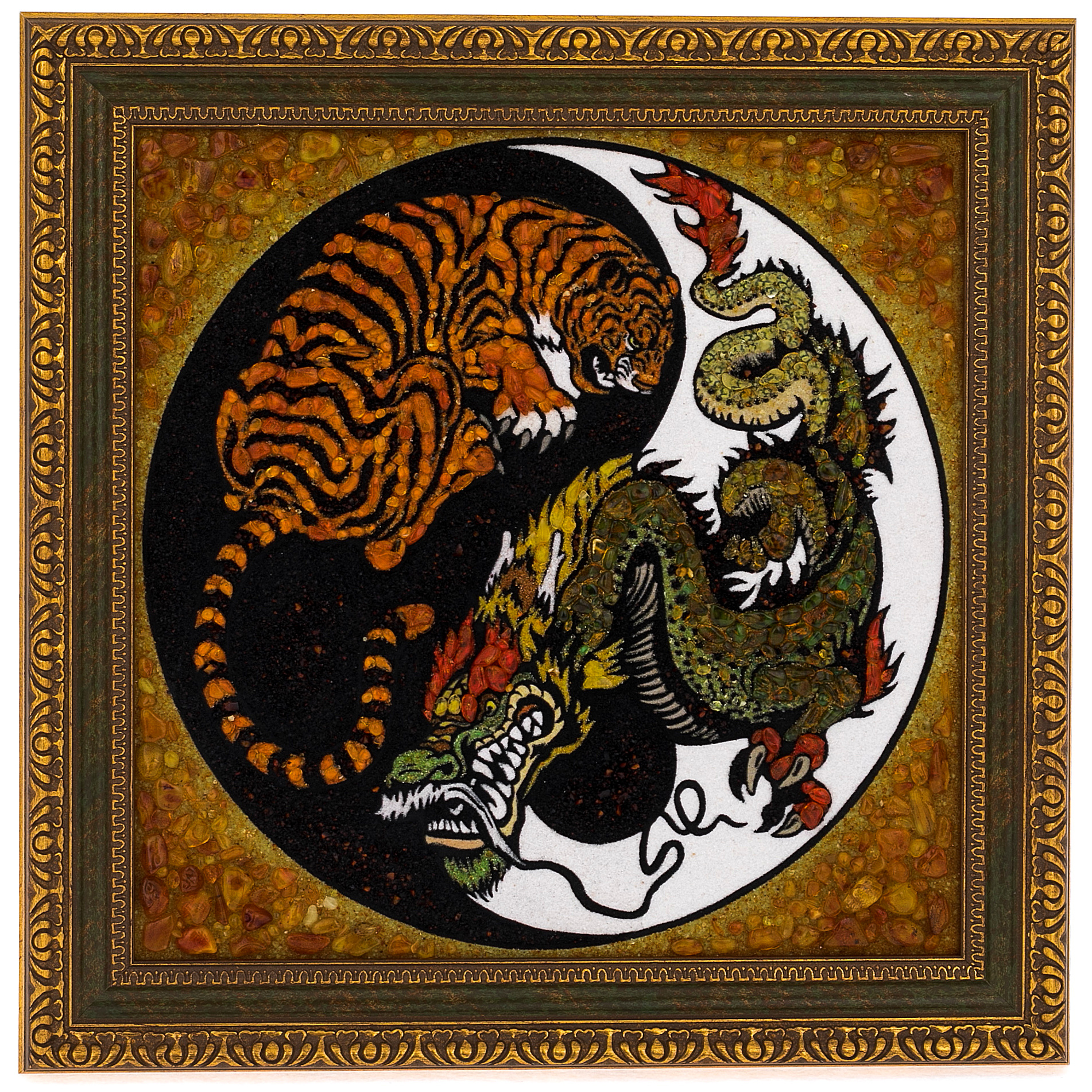 Декоративное панно из янтаря "Тигр с драконом"