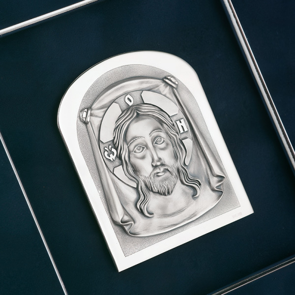 На панно воспроизведен знаменитый ушаковский образ Спасителя. Изображение предельно лаконично: плат, на нем лик Христа в нимбе и надпись по-гречески – больше ничего. Симон Ушаков – титан Золотого века, “государев изограф”, совершил революцию в русском иконописании. На смену традиционным приемам, сохранявшимся вплоть до середины XVII столетия, Симон ввел новый художественный язык, построенный на принципах “живоподобия”. Фирменный подарочный чехол в комплекте.