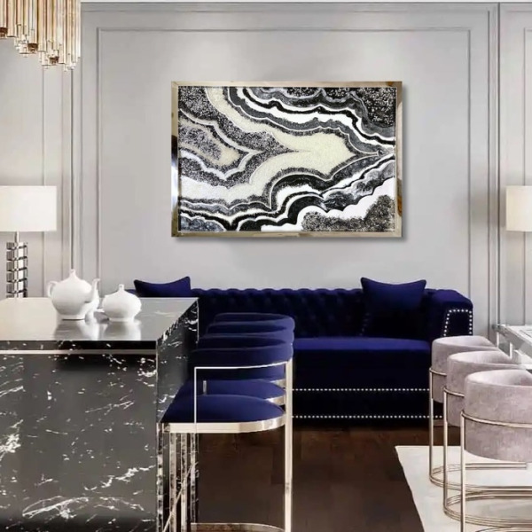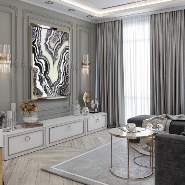 Панно "Черный агат" — это стиль роскоши, выраженной в плавных линиях, сочетании сияния кристаллов и блеска зеркал с глубиной фона. Это новое слово в современном прикладном искусстве, которое становится актуальным для интерьеров, где воплощаются фантазии дизайнеров, знающих толк в эксклюзивности. Идеально дополняют такие стили как ардеко (арт-деко), арт-нуво, неоклассика, модерн. Изысканное ювелирных панно станет идеальным выбором для тех, кто стремится окружить себя нетривиальной красотой.