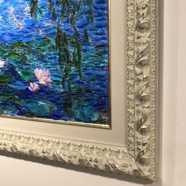 Панно декоративное из стекла "Пруд с водяными лилиями" по мотивам работ К. Моне