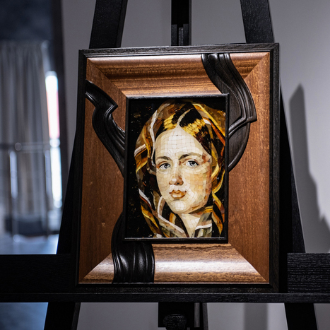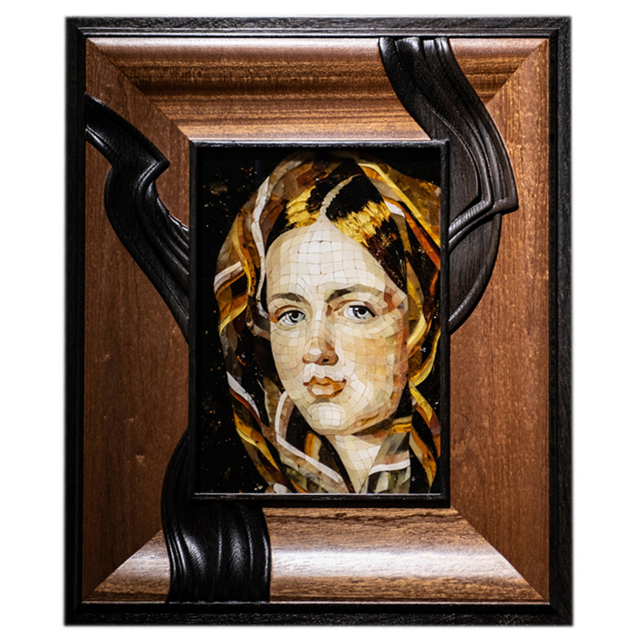 Панно из дерева и янтаря Алексей Гаврилович Венецианов "Девушка в клетчатом платке"