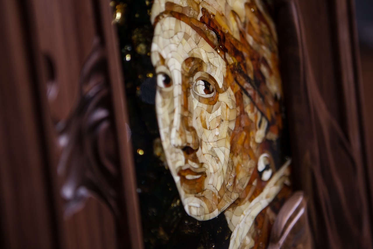 Панно из дерева и янтаря Ян Вермеер "Девушка с жемчужной серёжкой"