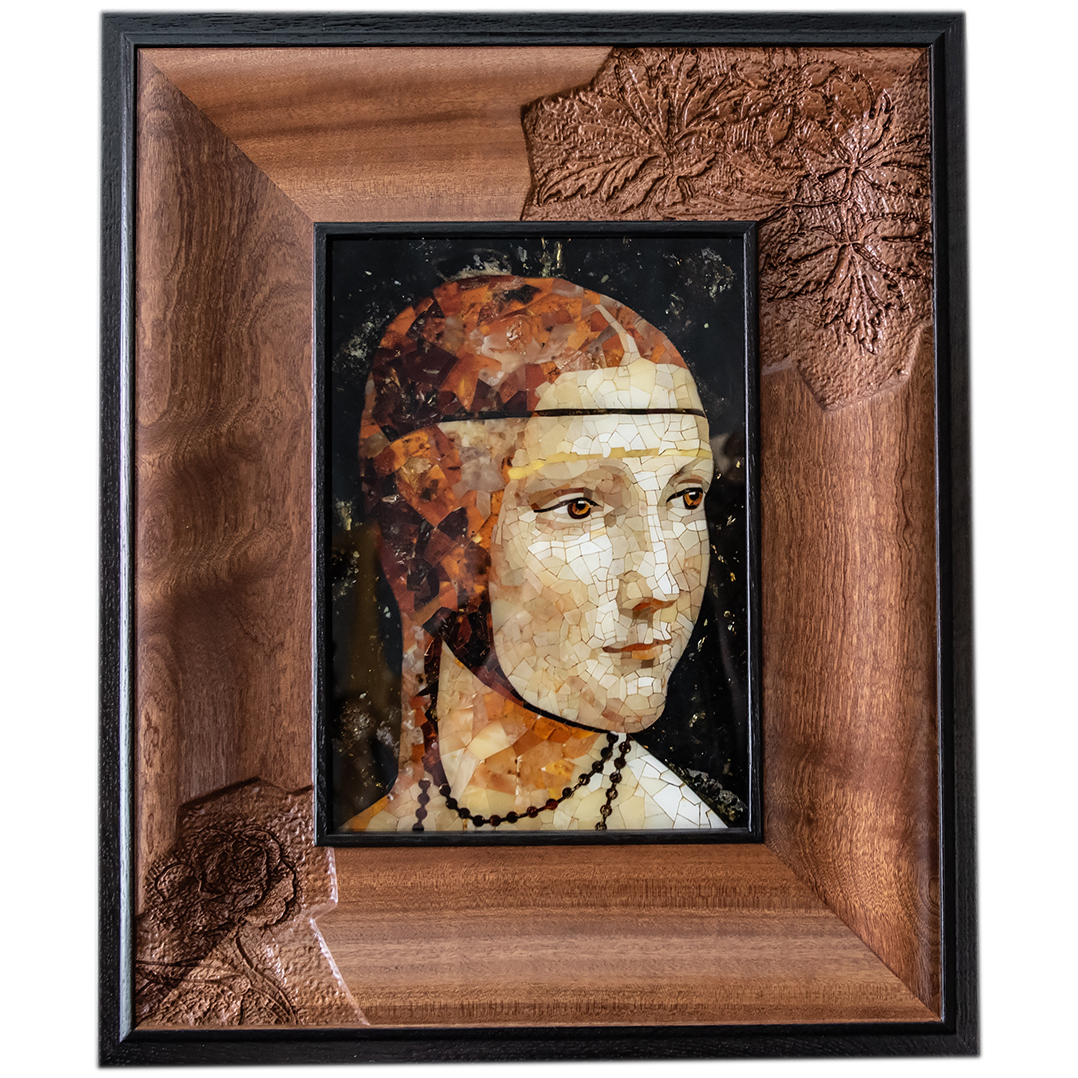 Панно из дерева и янтаря Леонардо да Винчи "Дама с горностаем"