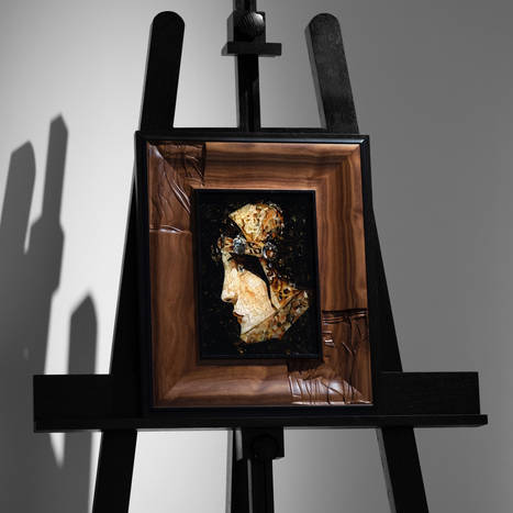 Панно из дерева и янтаря Люсьен де Севола "Голова леди в средневековом костюме"