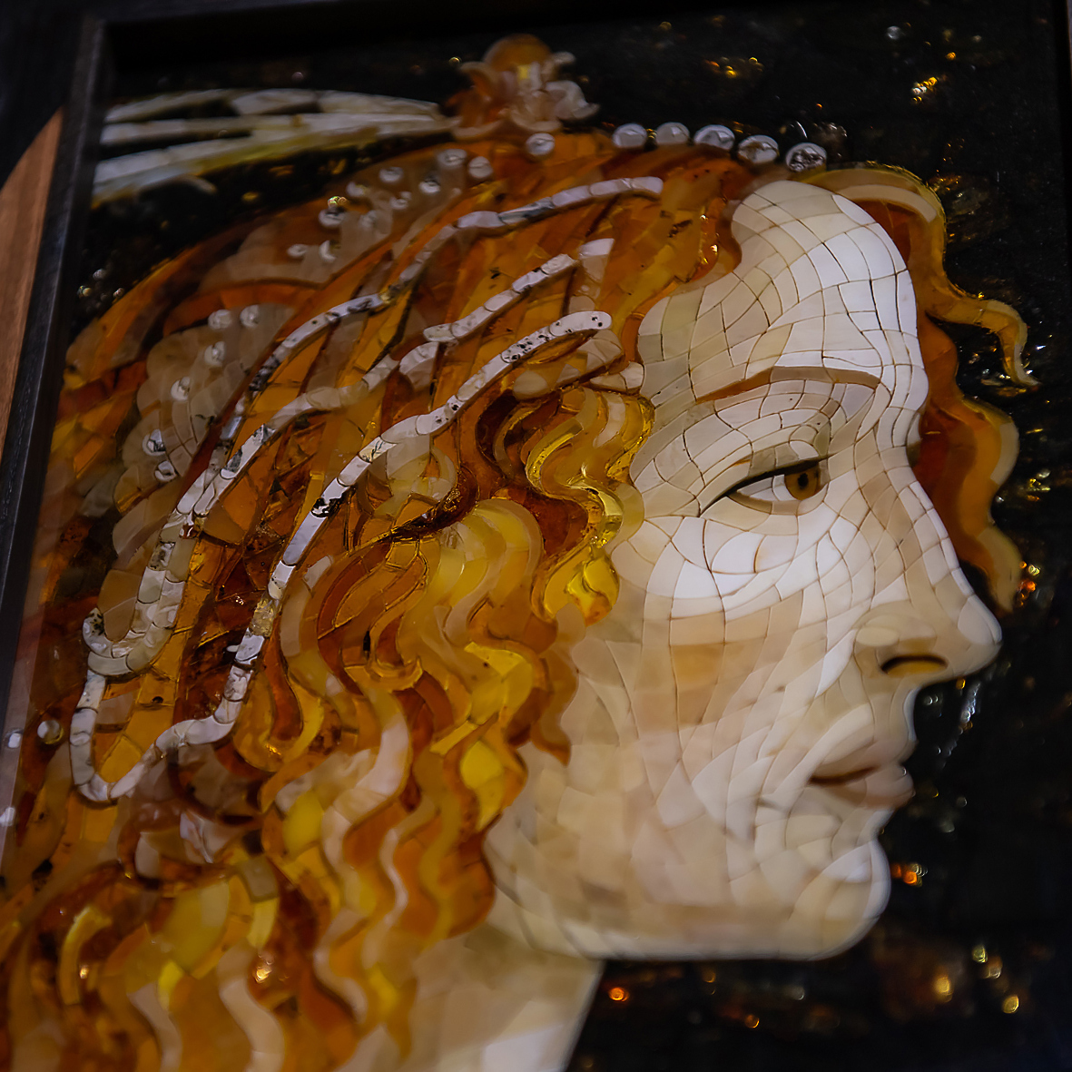 Панно из дерева и янтаря Сандро Боттичелли "Портрет молодой женщины"
