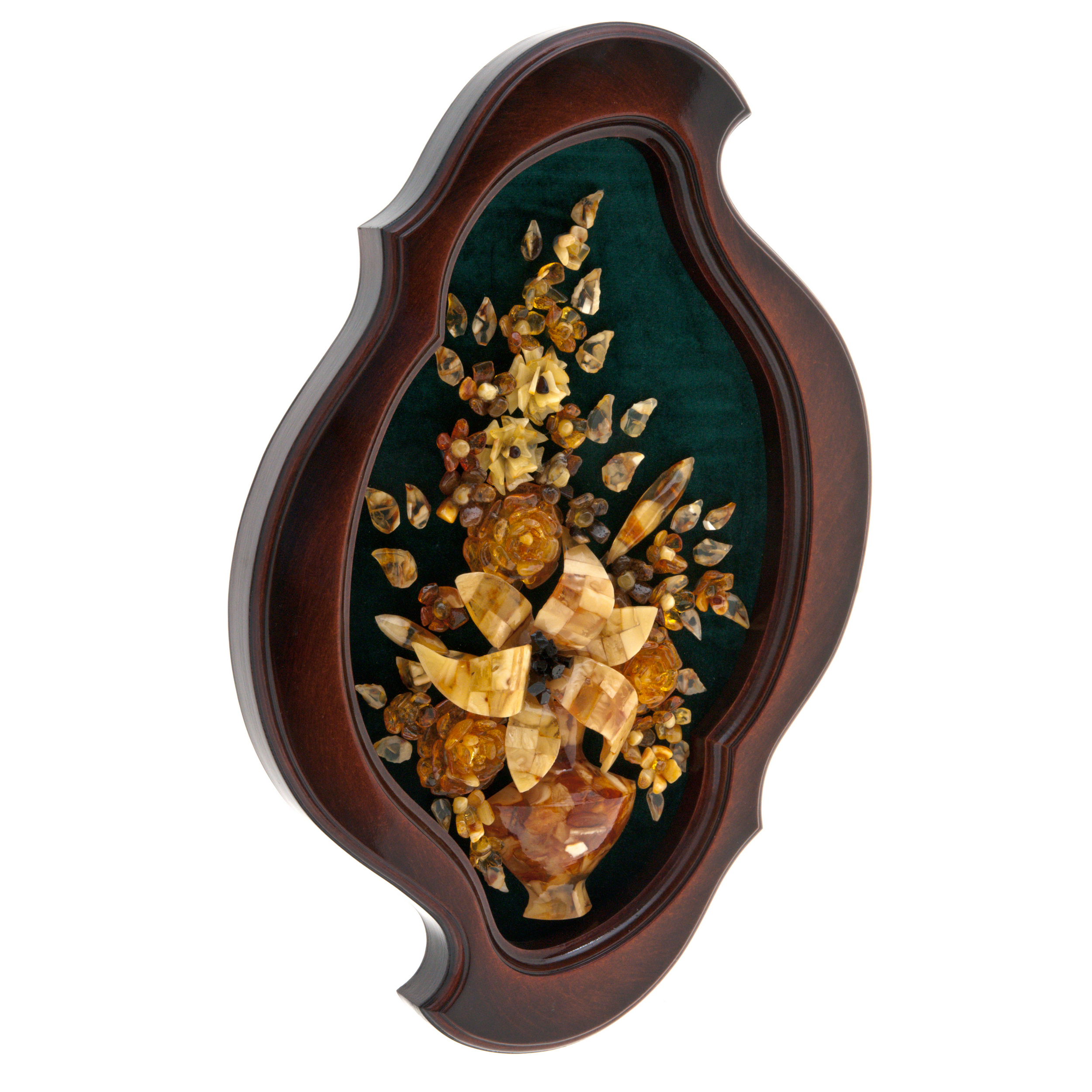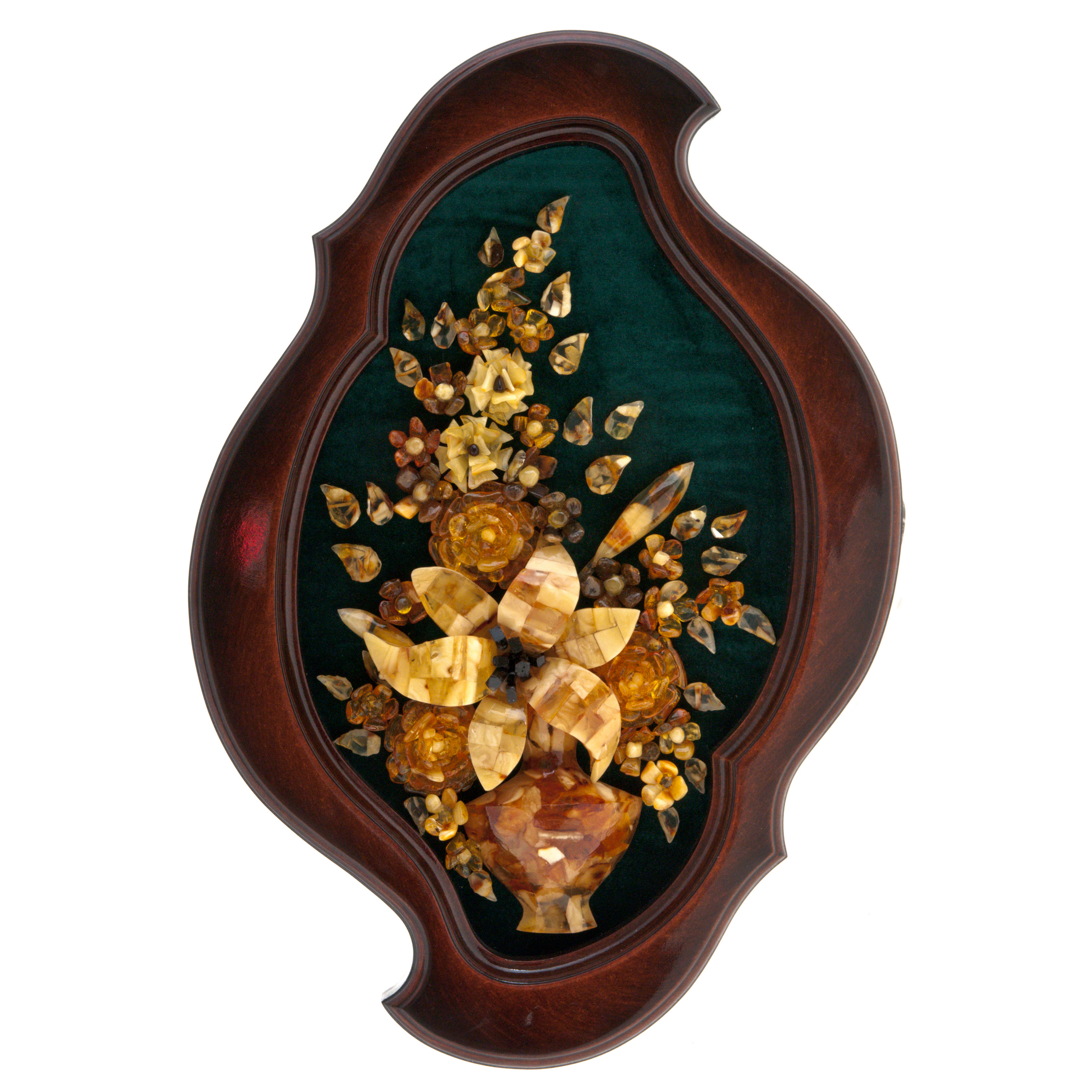 Панно из янтаря фигурное "Букет с лилией" зеленое