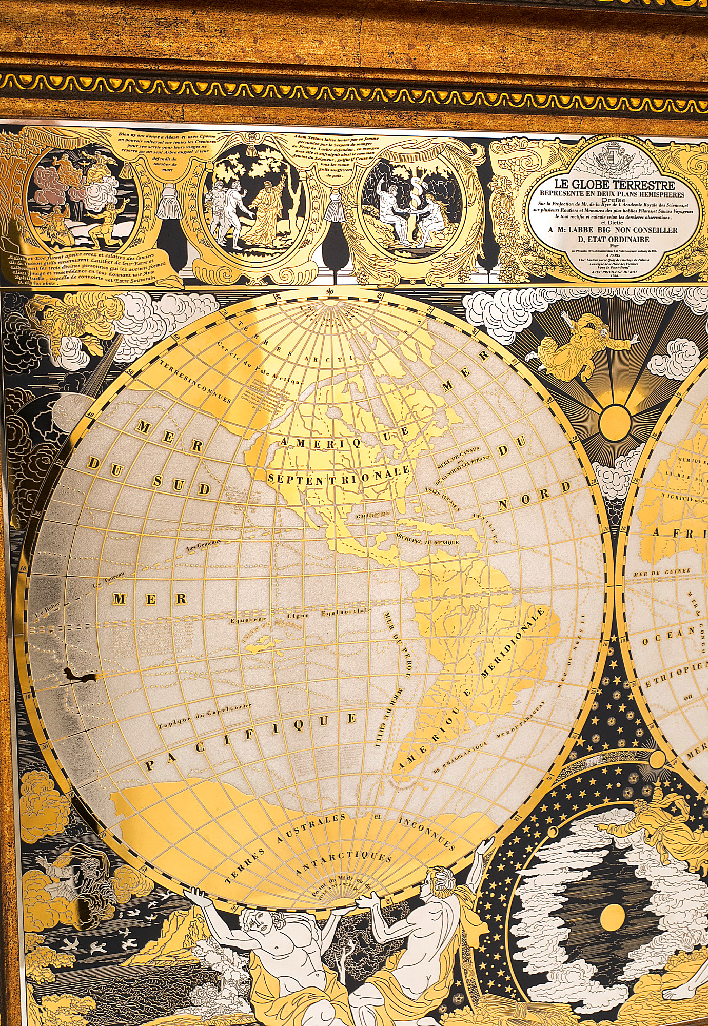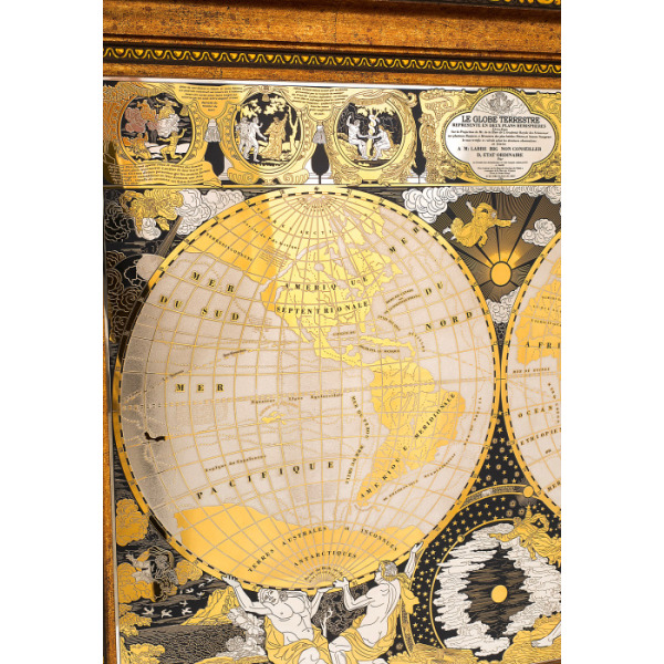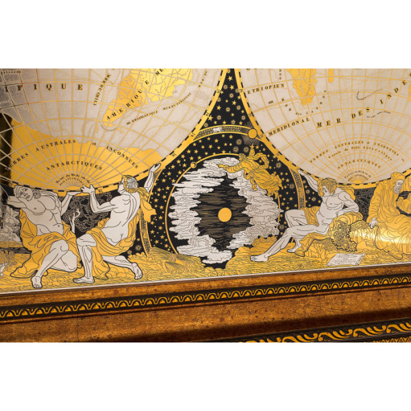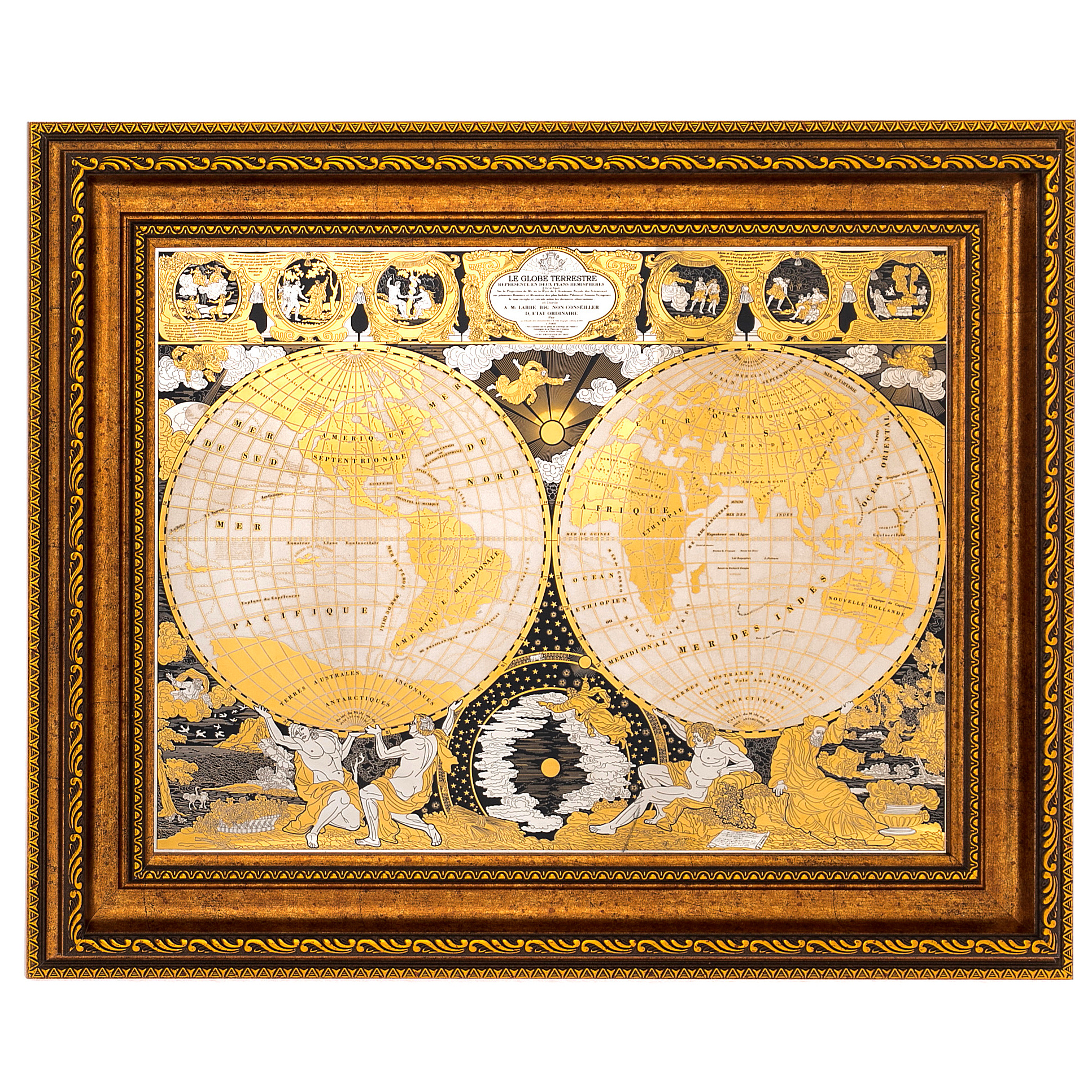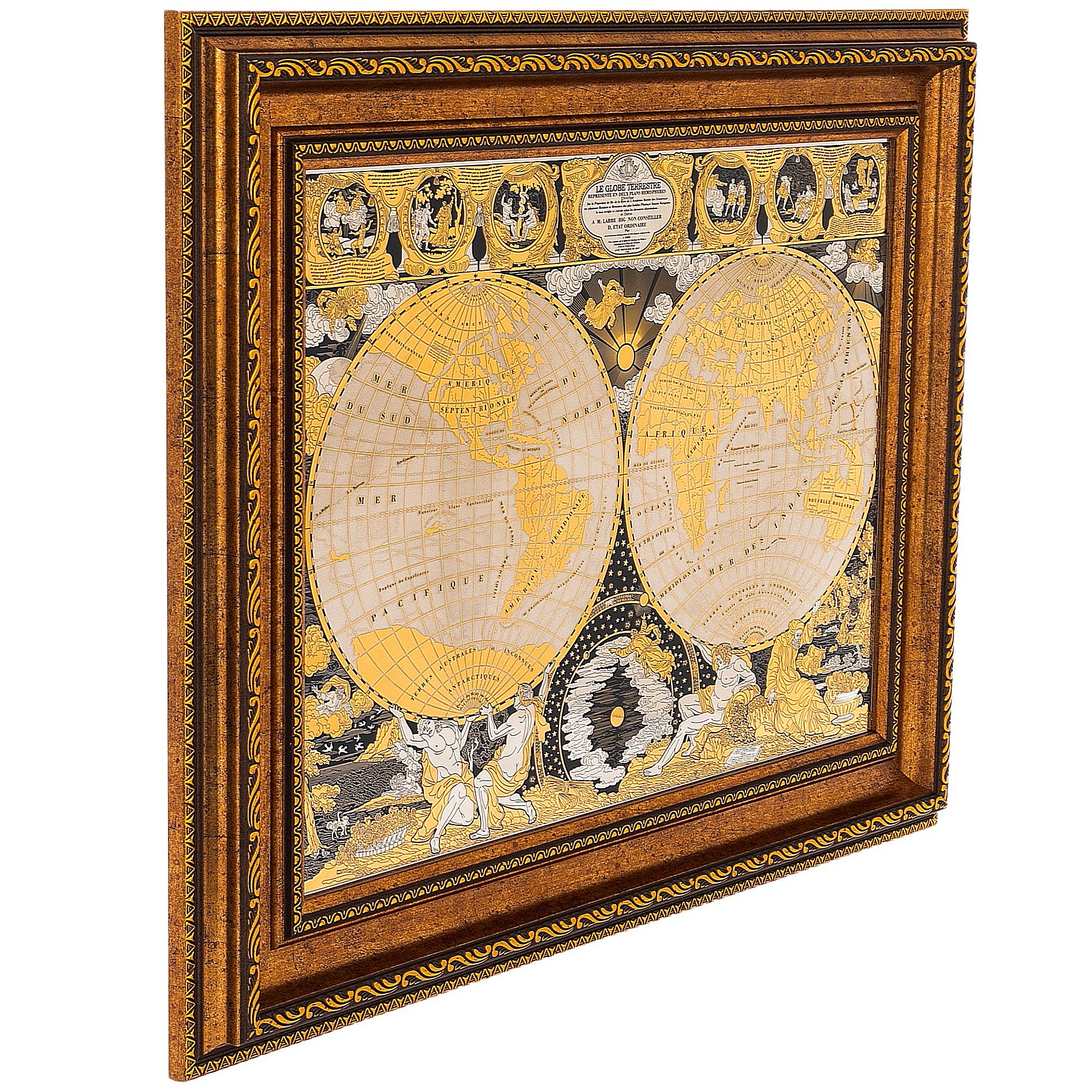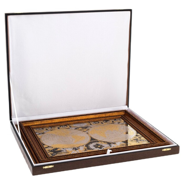 Панно Златоустовских мастеров с изображением карты мира в стиле греческой мифологии, украсит офис или квартиру, поскольку самобытные народные ремесла всегда ценились на вес золота. Златоустовские мастера используют в своей работе старинные техники рисунка по металлу, травления, золочения, серебрения и никелирования, украшая работы натуральными и драгоценными камнями. В результате гравировки на стали и драгоценных металлах высшей пробы создаются элегантные миниатюры, причудливые узоры и колоритные сюжетные зарисовки. Панно из Златоуста по стилю и исполнению напоминает произведение станковой живописи.