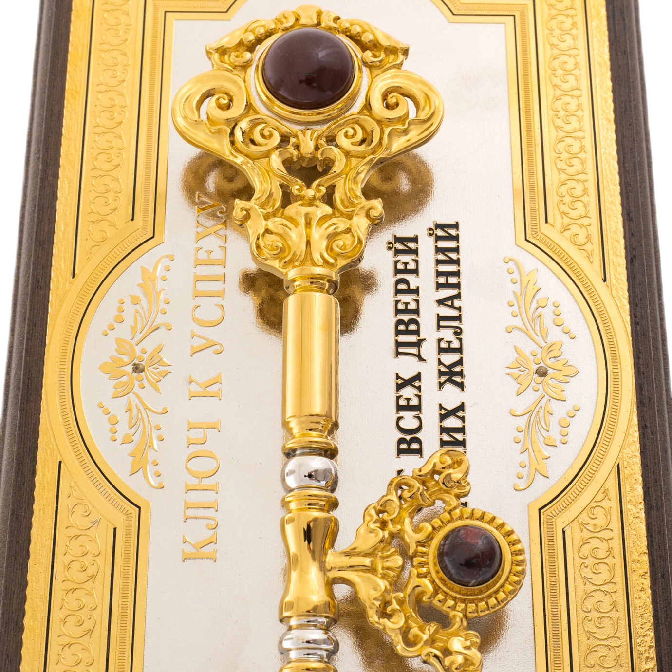 Панно «Ключ от всех желаний» обращено к тем, кто ценит предметы с идеей и символикой. Ключ в данной интерпретации становится метафорой возможностей, достижений и открытых дверей, превращая изделие в выразительный подарок с посланием. Оно органично вписывается в кабинет или представительское пространство, служа не только украшением, но и тонким акцентом, подчеркивающим статус и стремление к новым вершинам.