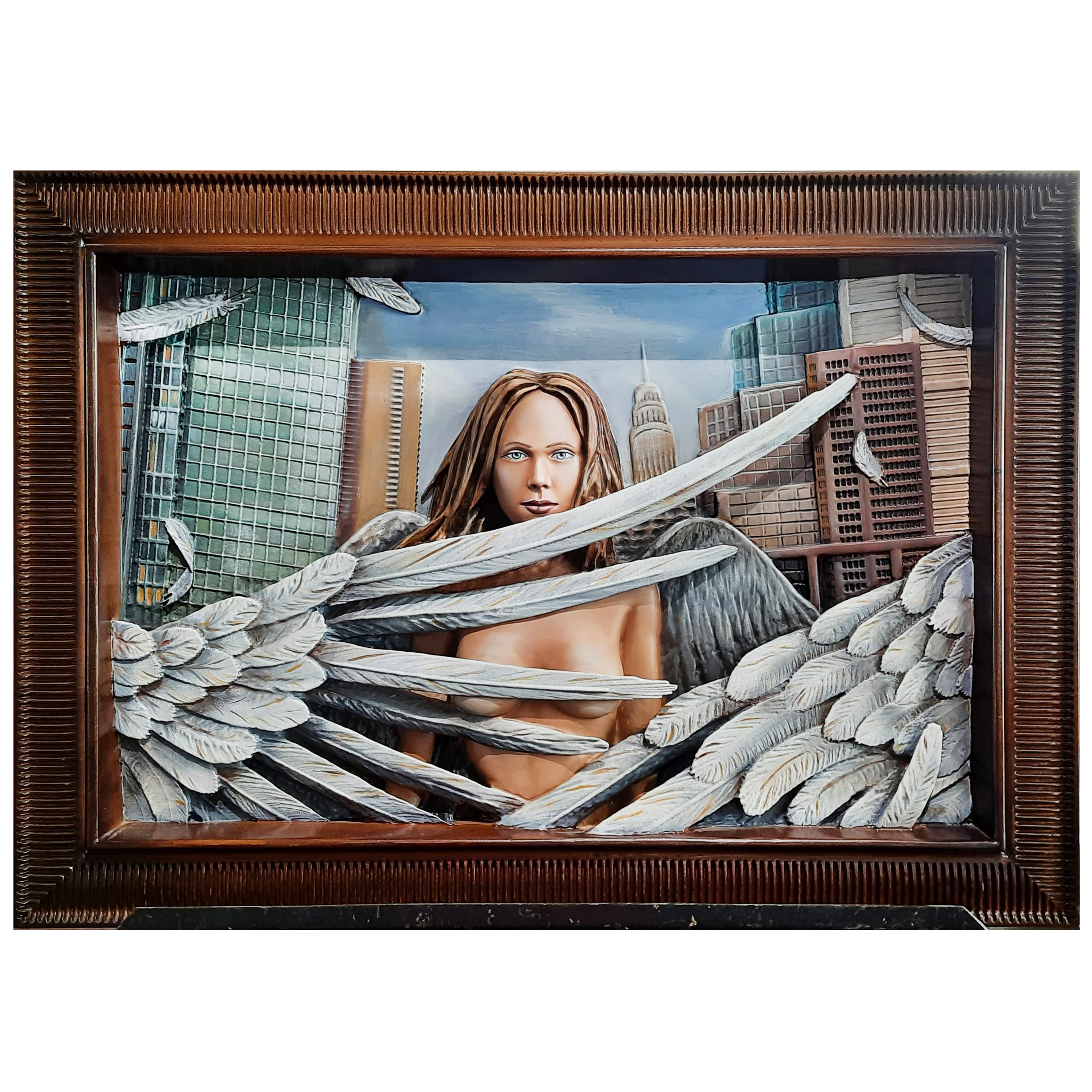 Это панно станет отличным украшением для современных интерьеров, привнеся в них глубину и смысл. Оно будет идеально смотреться в гостиной, офисе или даже в общественных местах, таких как галереи или выставочные залы, привлекая внимание своей оригинальностью и символикой. "Ангел в городе" — это произведение, которое отражает тему духовности и защиты в условиях городской суеты.