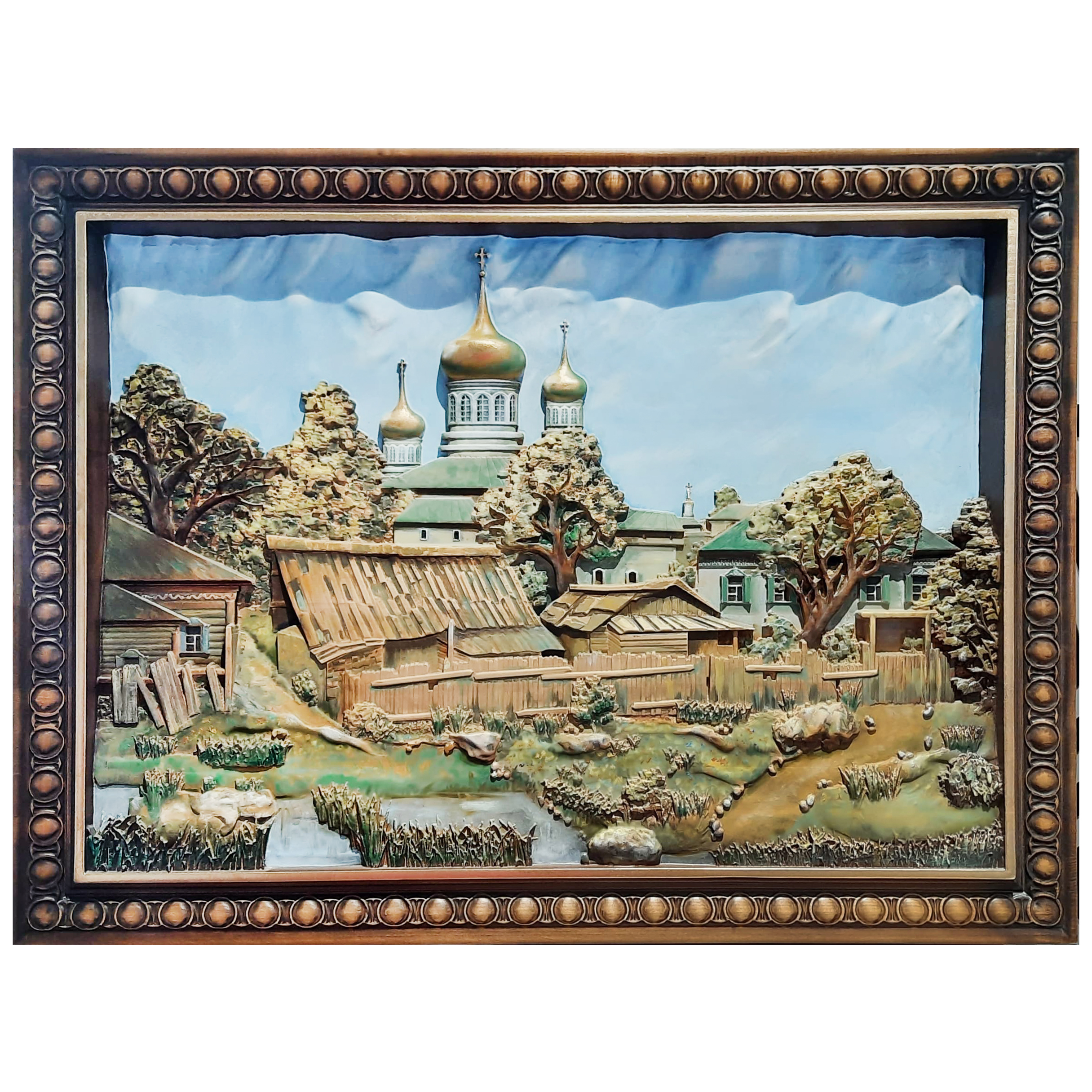 Панно "Деревня" станет прекрасным украшением для любого интерьера, добавляя в него атмосферу спокойствия и гармонии. Оно будет уместно в гостиной, кухне или прихожей, создавая ощущение уюта и связи с природой. Также панно идеально подойдёт для общественных пространств, таких как библиотеки, музеи или храмы, подчёркивая важность традиций и культуры.