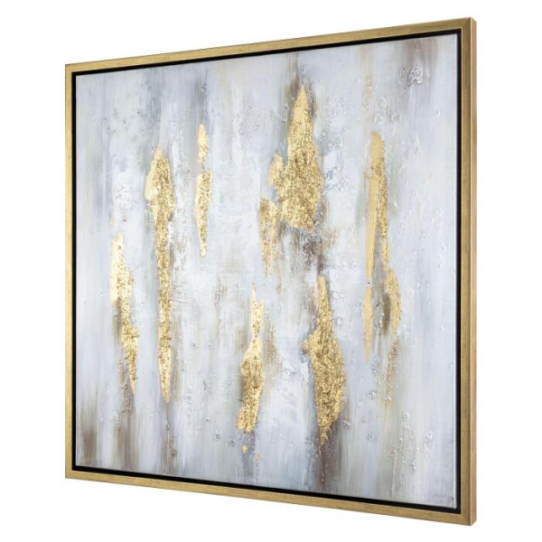 Интерьерное панно с абстрактным сюжетом. Картина расписана вручную. Объемные элементы выполнены из декоративной шпатлевки, камней и золотистого глиттера. Подрамник выполнен из массива дерева, объемная пластиковая рама золотого цвета. Возможно горизонтальное или вертикальное размещение