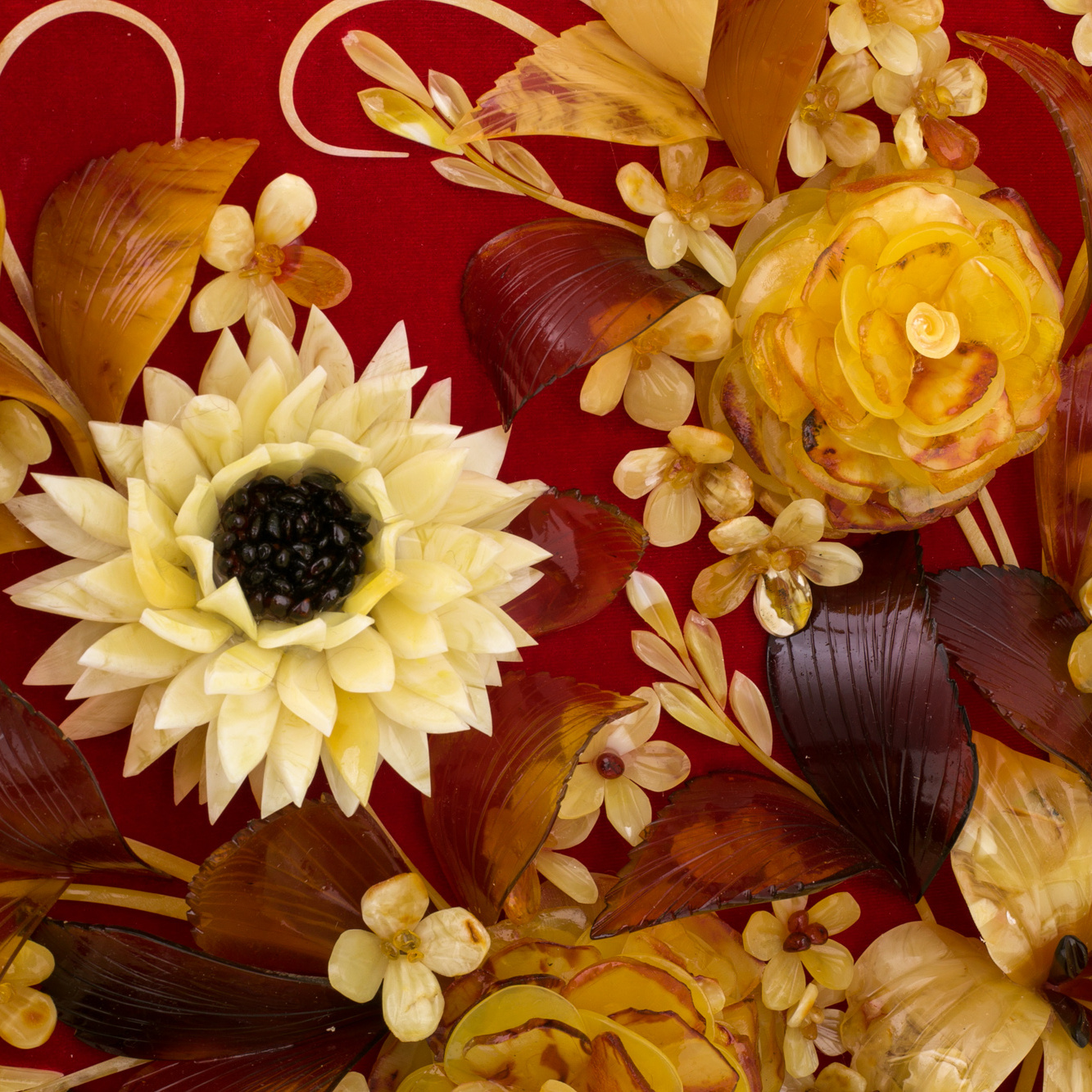 Материалы:янтарь, янтарный композит, паспарту - бархат.