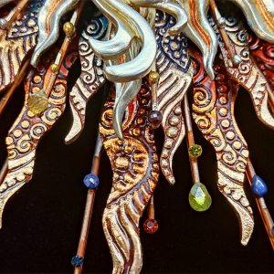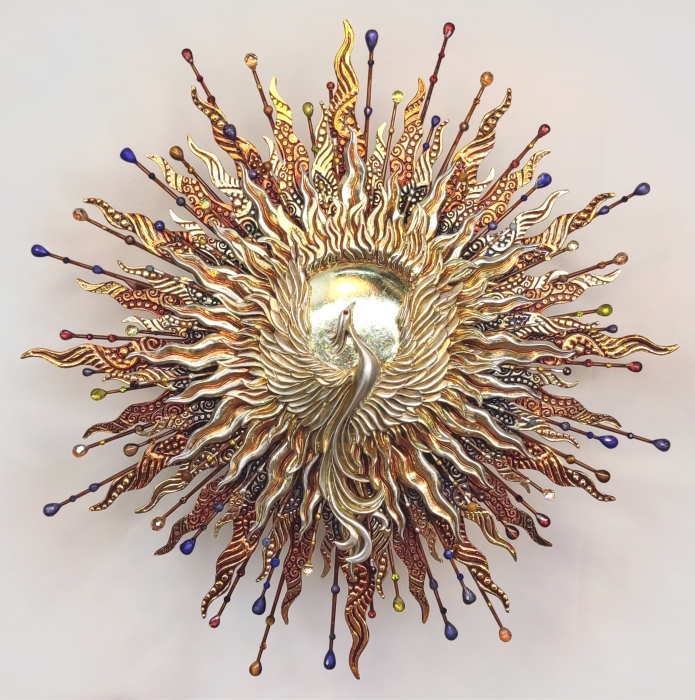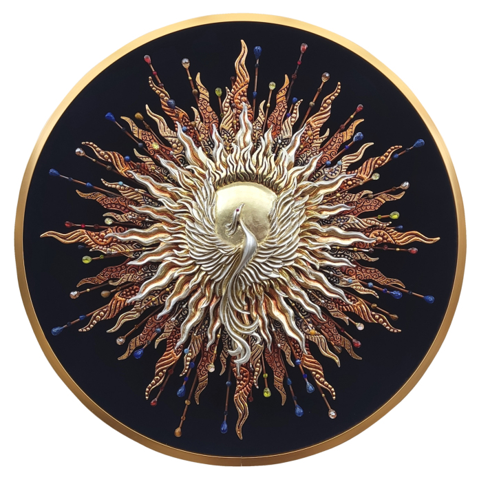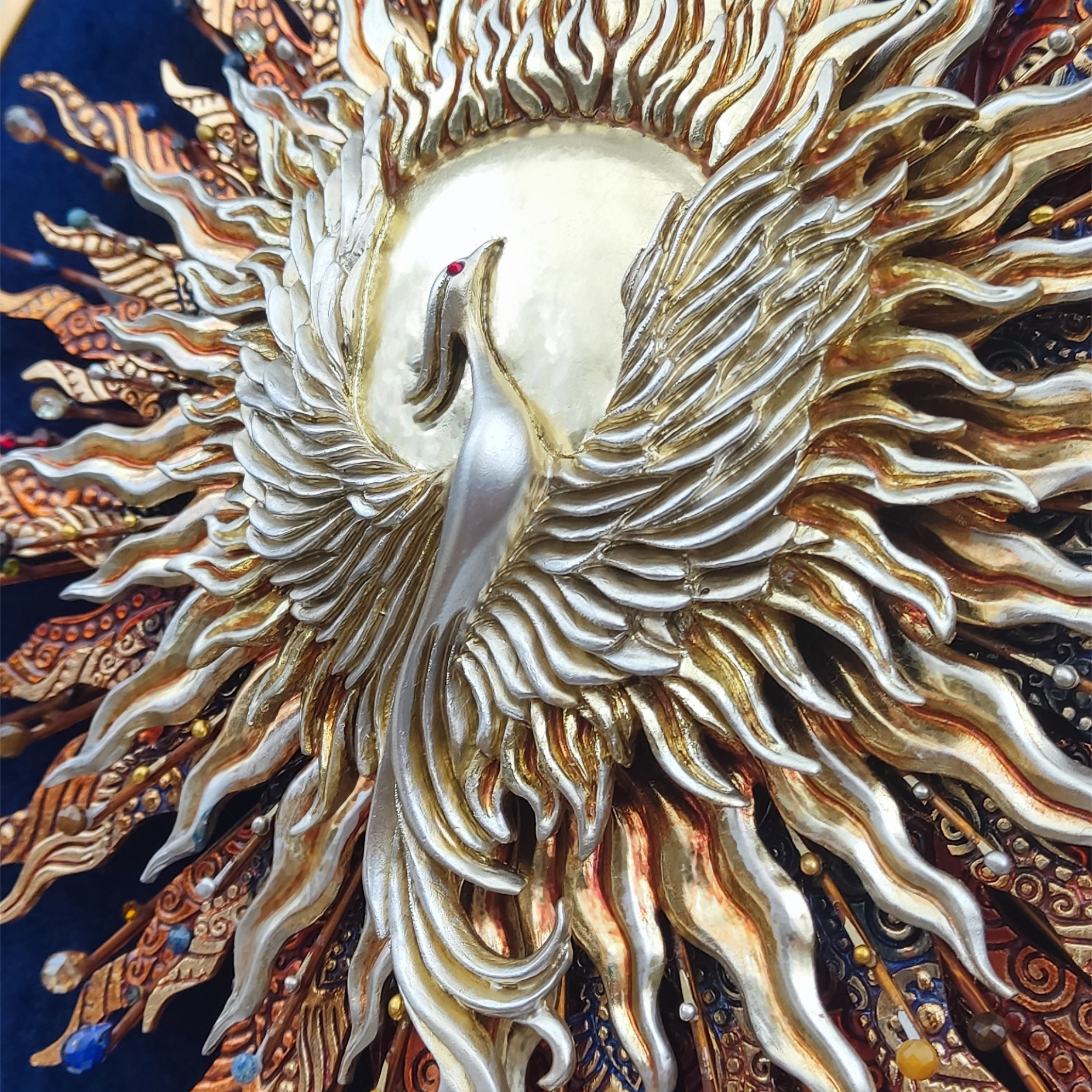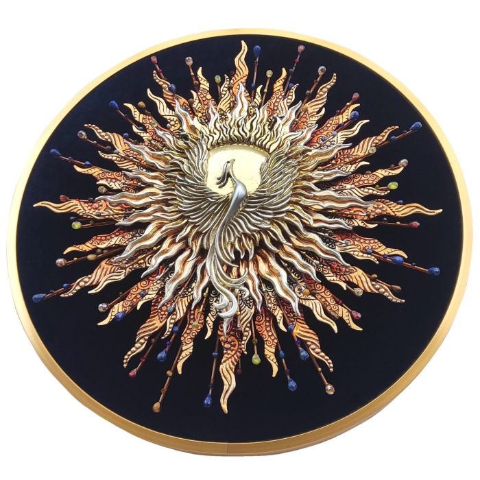 Панно-оберег с драгоценными камнями "Солнечный Феникс"