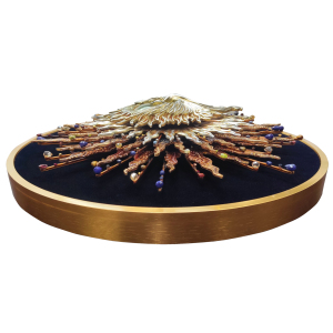 Настенный оберег, созданный златоустовскими мастерами, представляет собой произведение искусства, которое украсит любой интерьер — будь то офис или квартира. На обереге изображены сцены охоты и лесные звери, выполненные в технике златоустовской гравюры. На изделии изображена молитва-оберег, которая, согласно верованиям, защищает охотника в лесу. Оберег выполнен из стали высшей пробы и украшен сложными орнаментами и миниатюрными изображениями, создающими неповторимые колорит и глубину. Драгоценные и натуральные камни, использованные в оформлении, придают оберегу дополнительные изысканность и благородство.