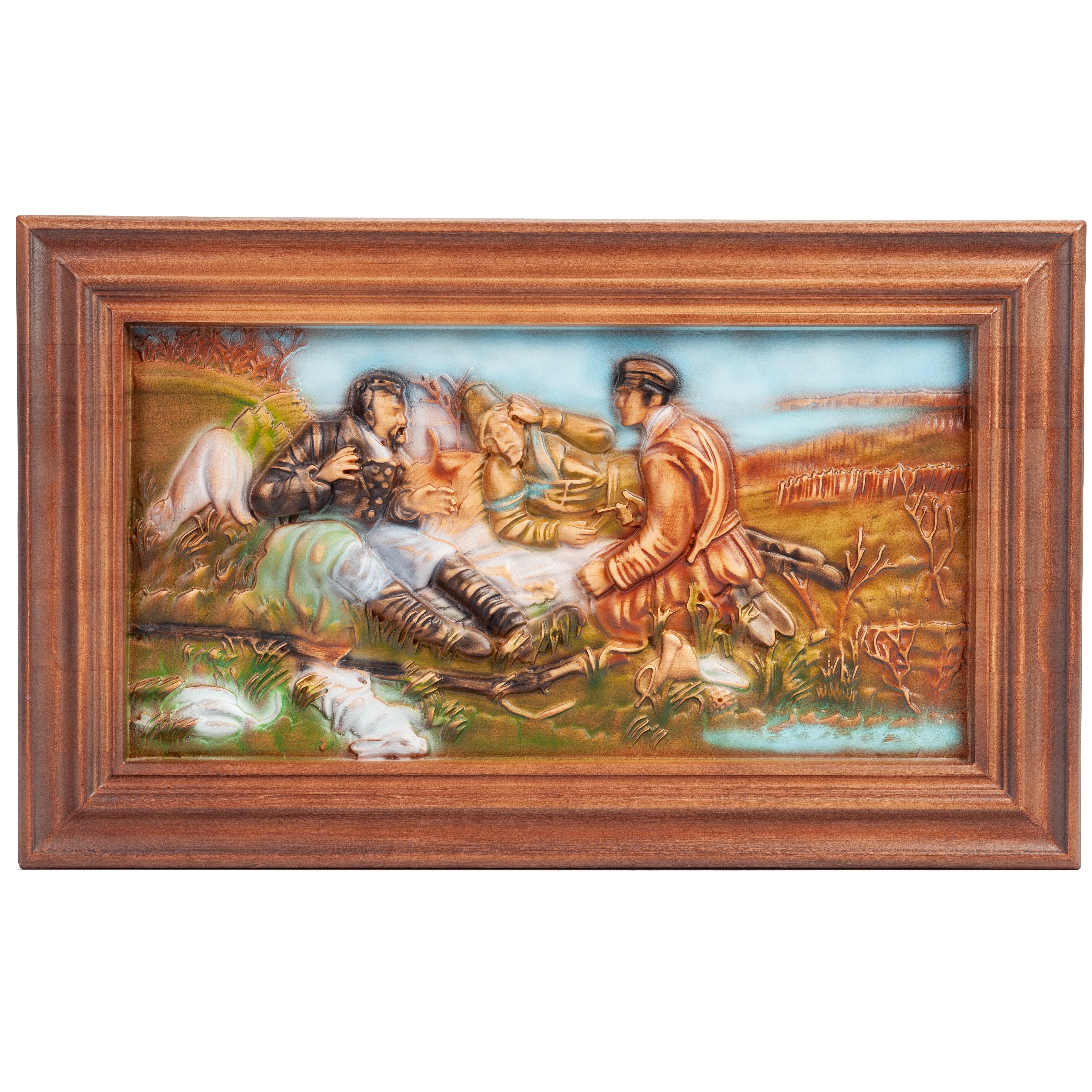 Панно из бука "Охотники на привале"