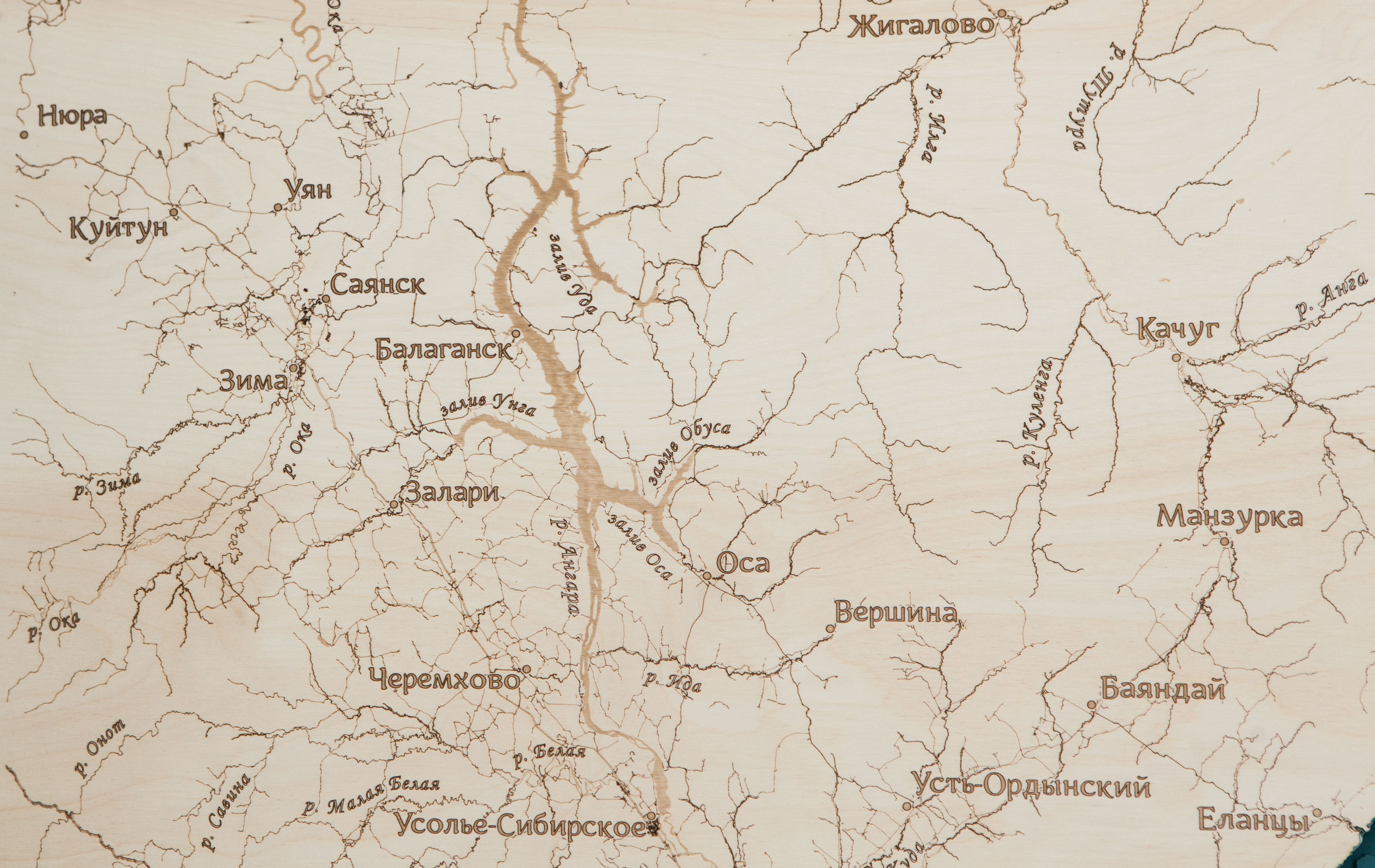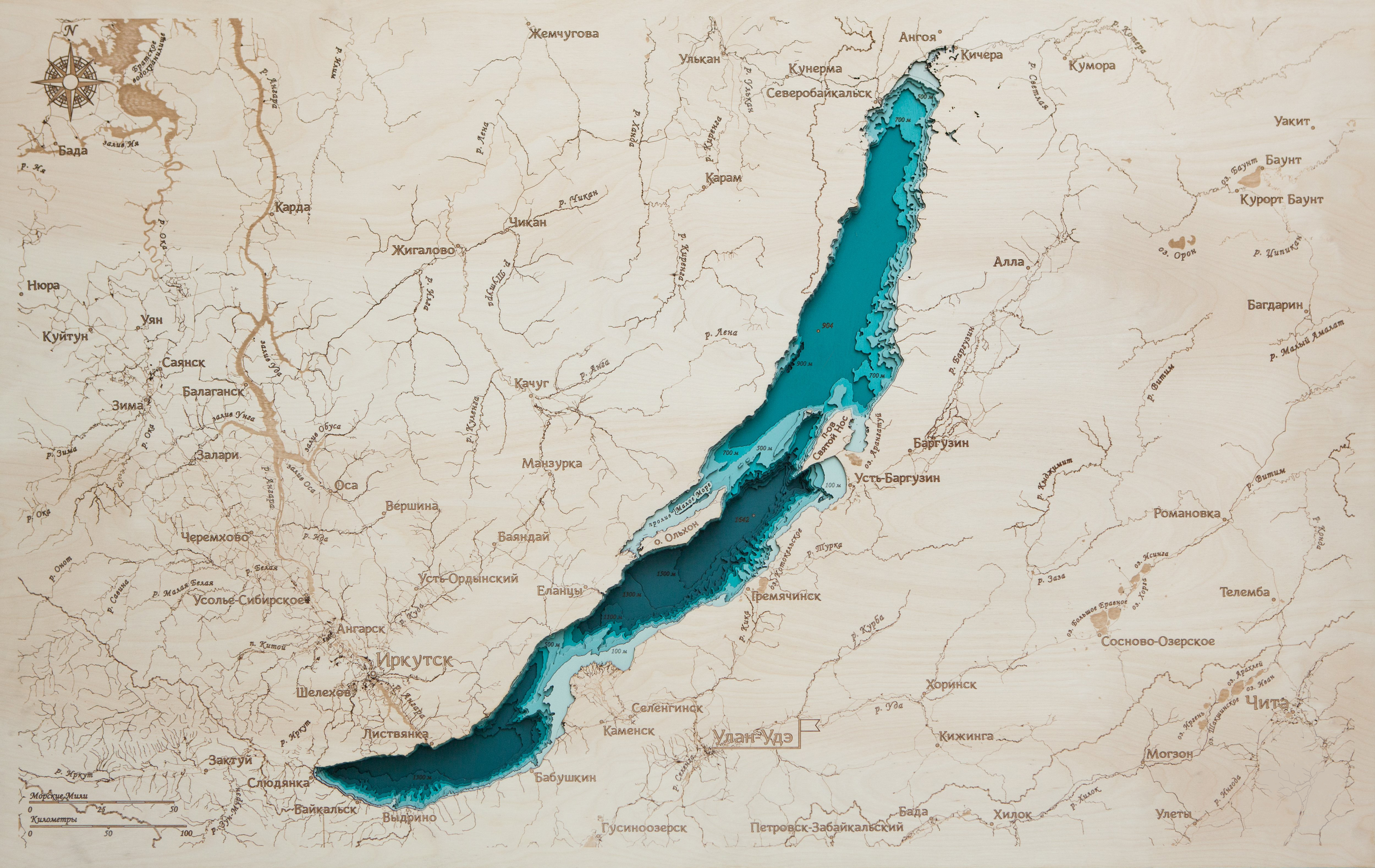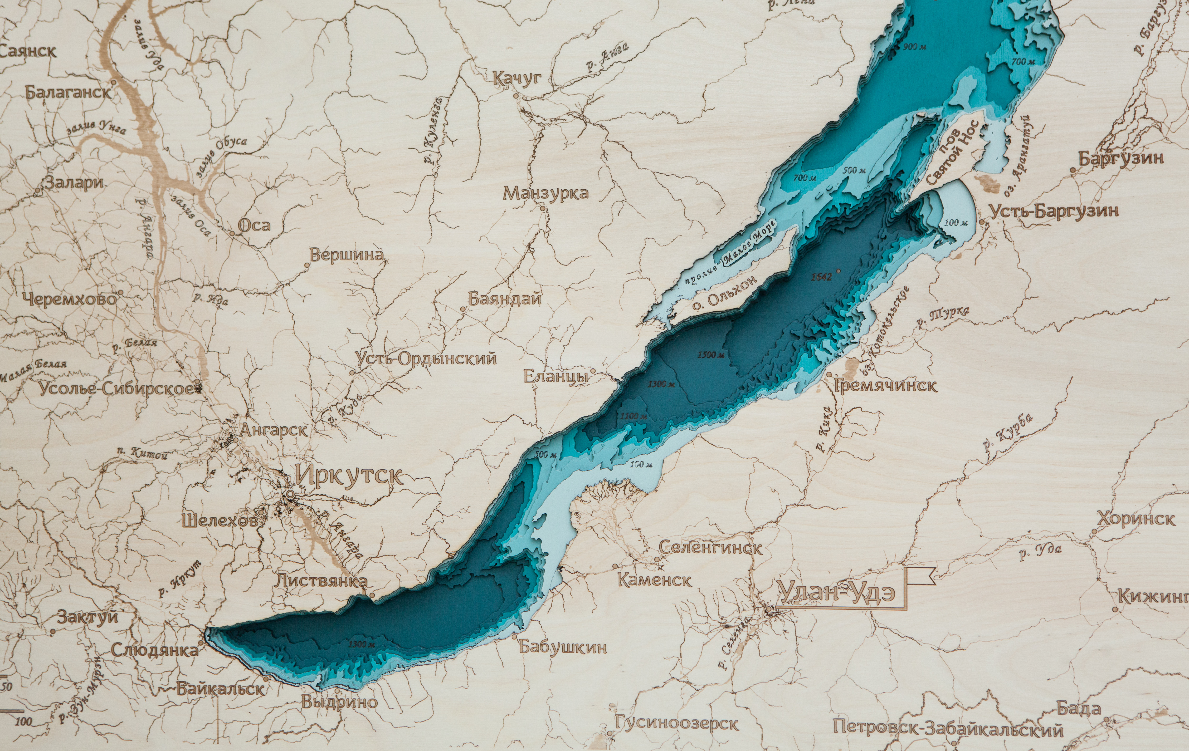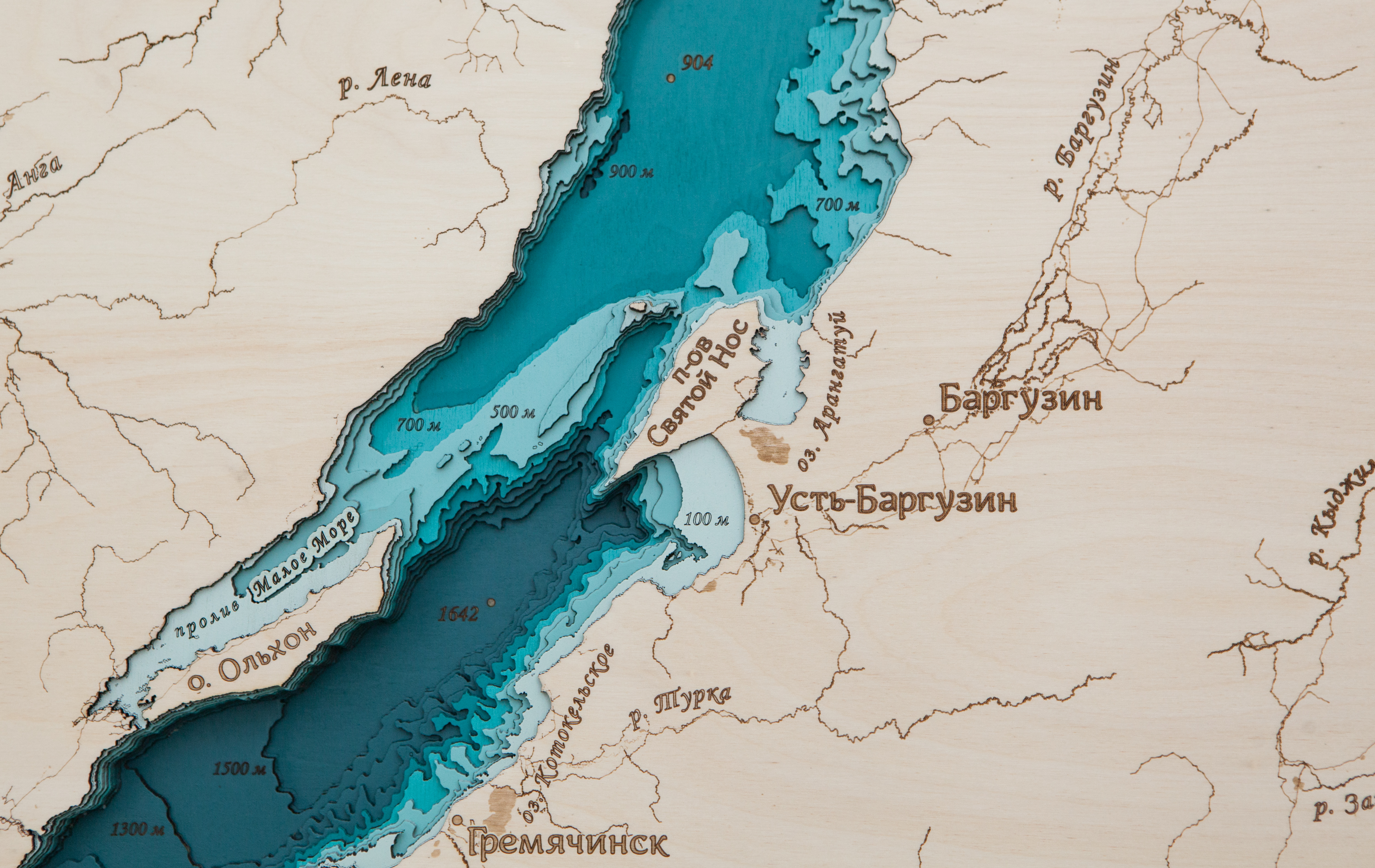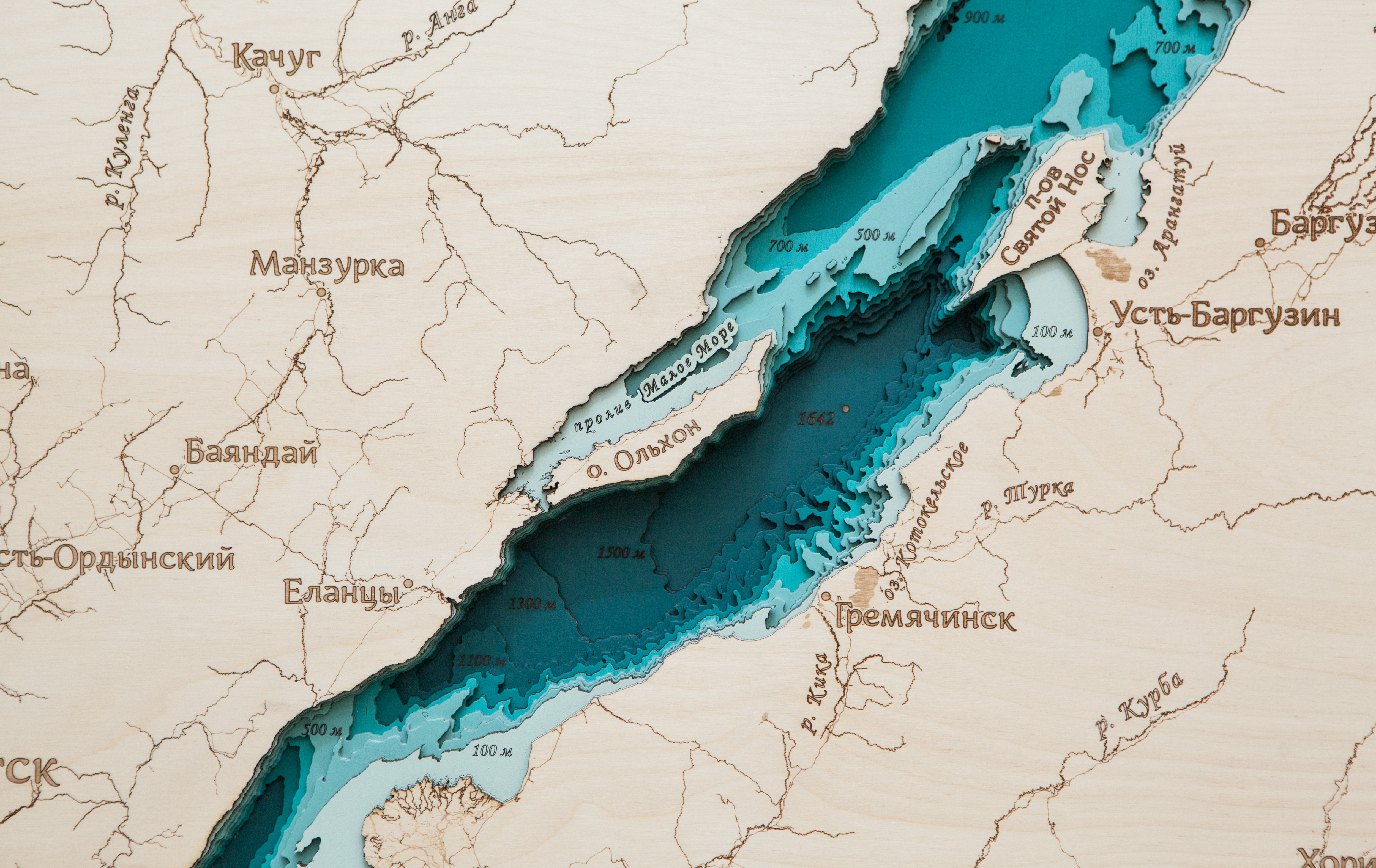 Карта деревянная многослойная "Карта озера Байкал №2" на заказ