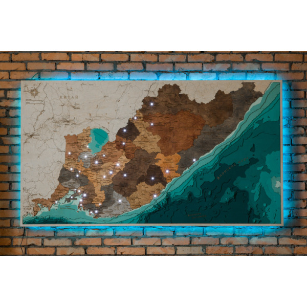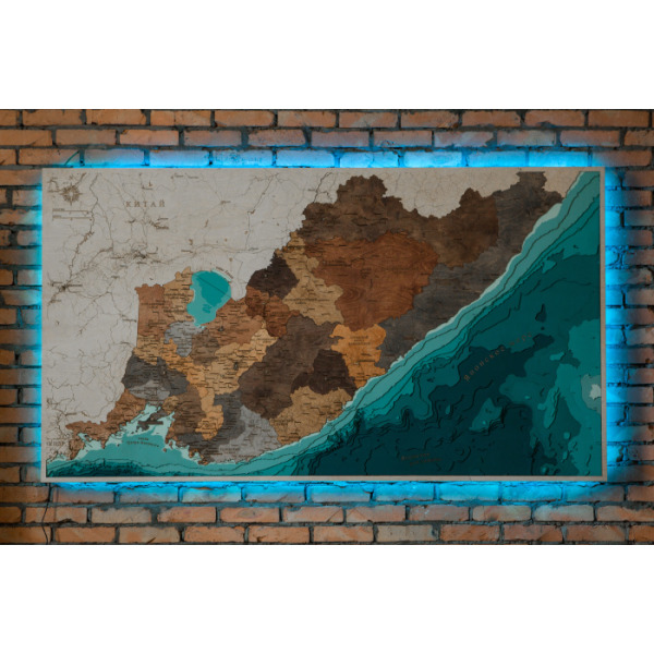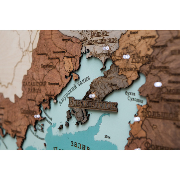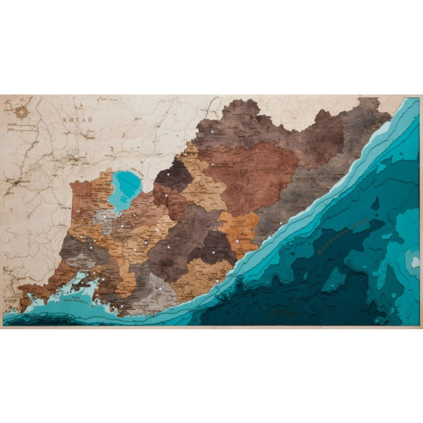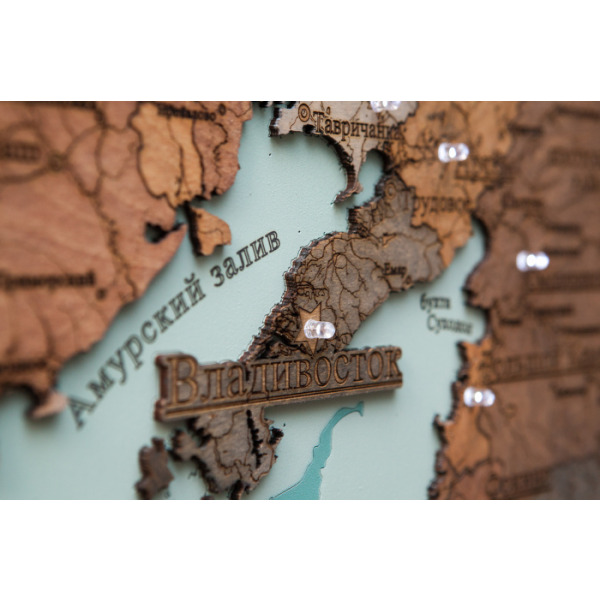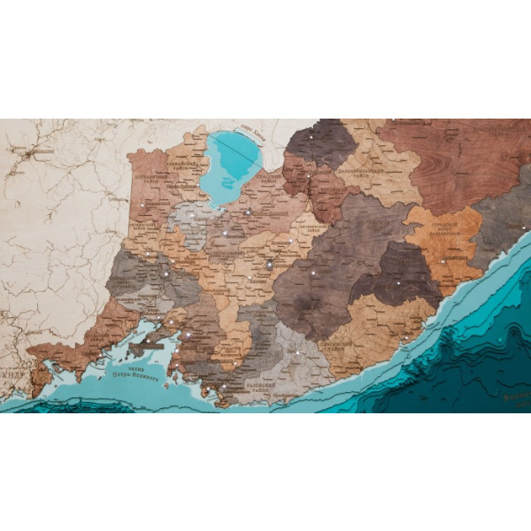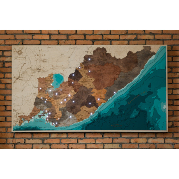 Карта деревянная многослойная "Карта Приморский край №2, с подсветкой" на заказ