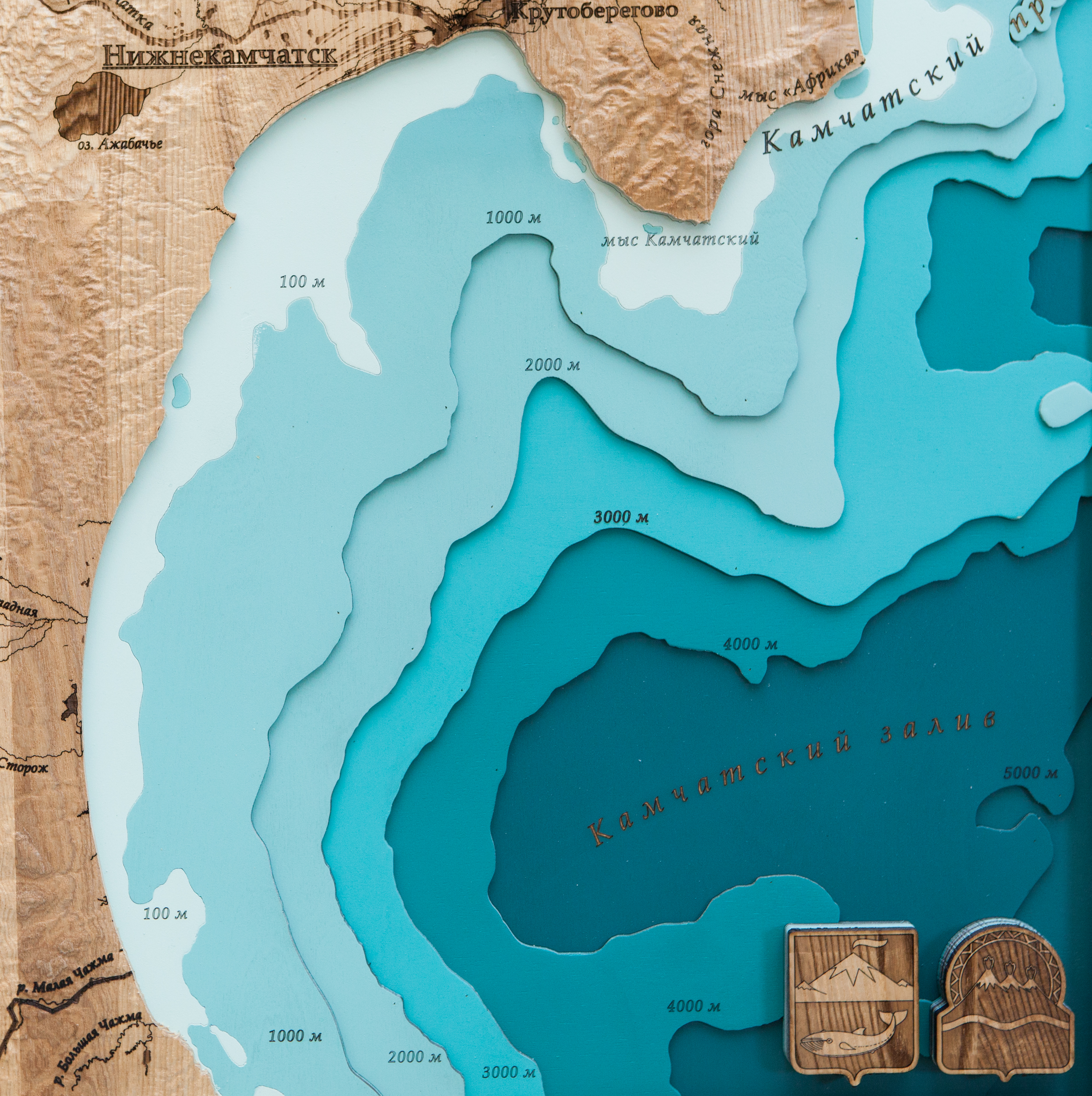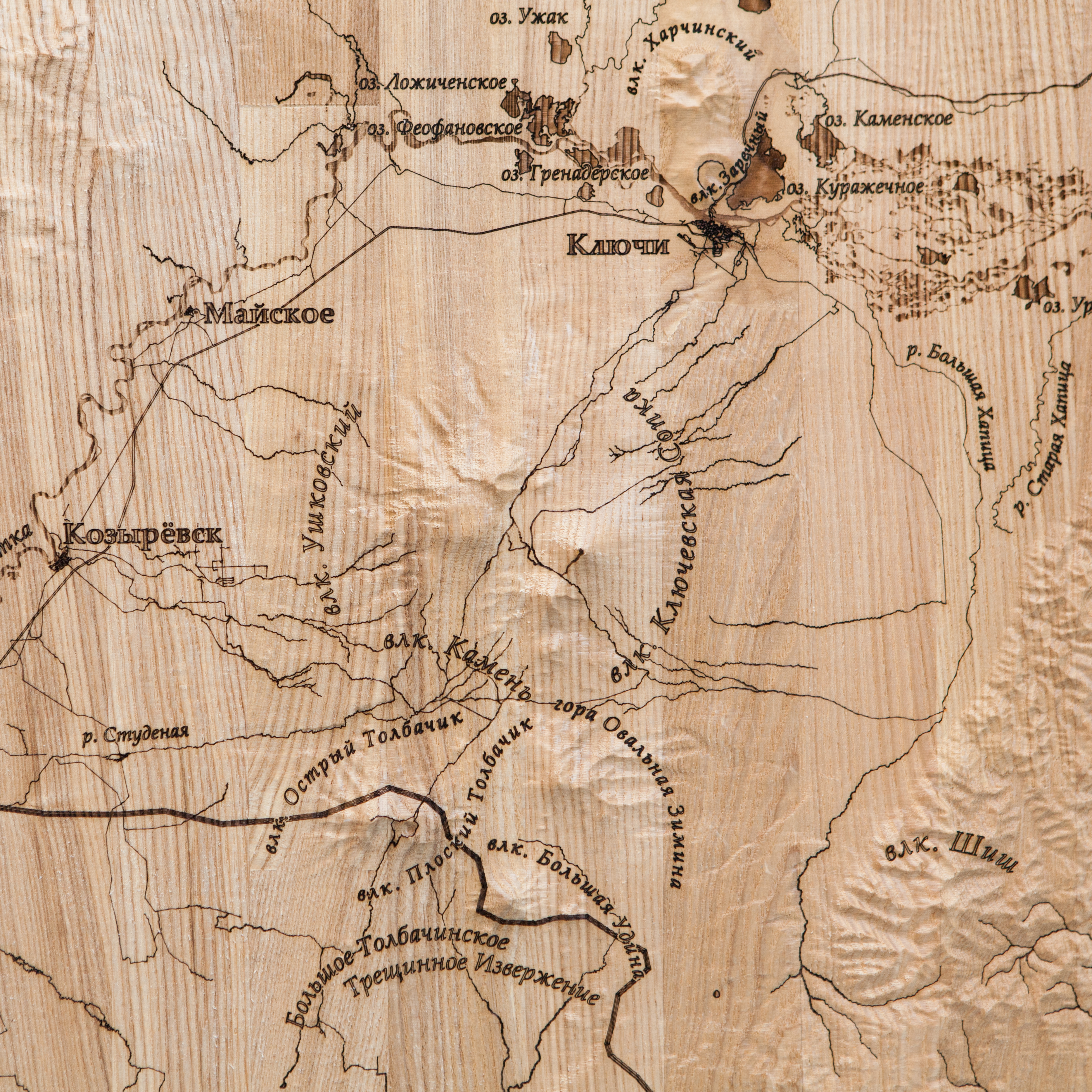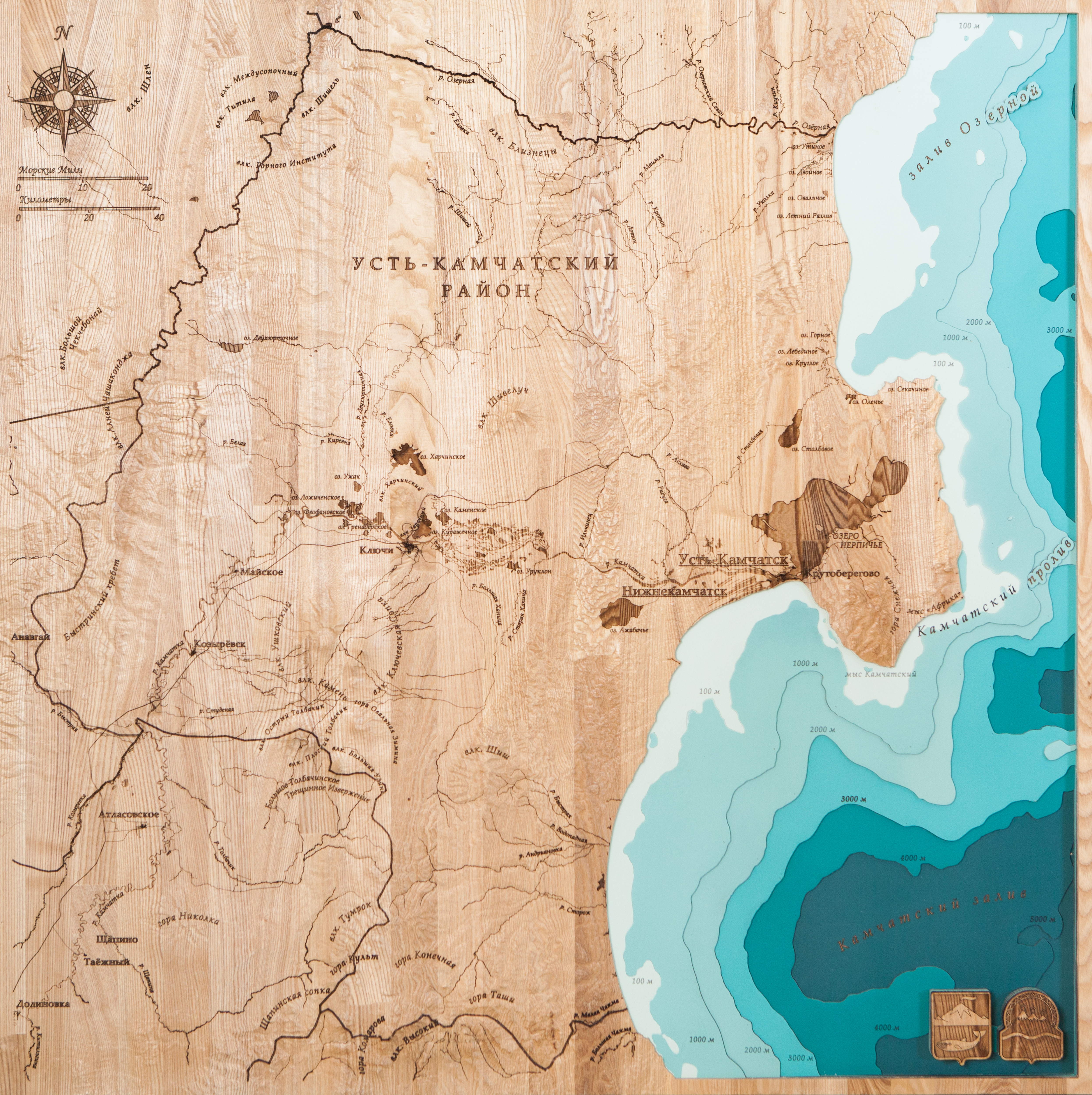Карта деревянная многослойная "Карта Усть-Камчатского района, рельеф" на заказ