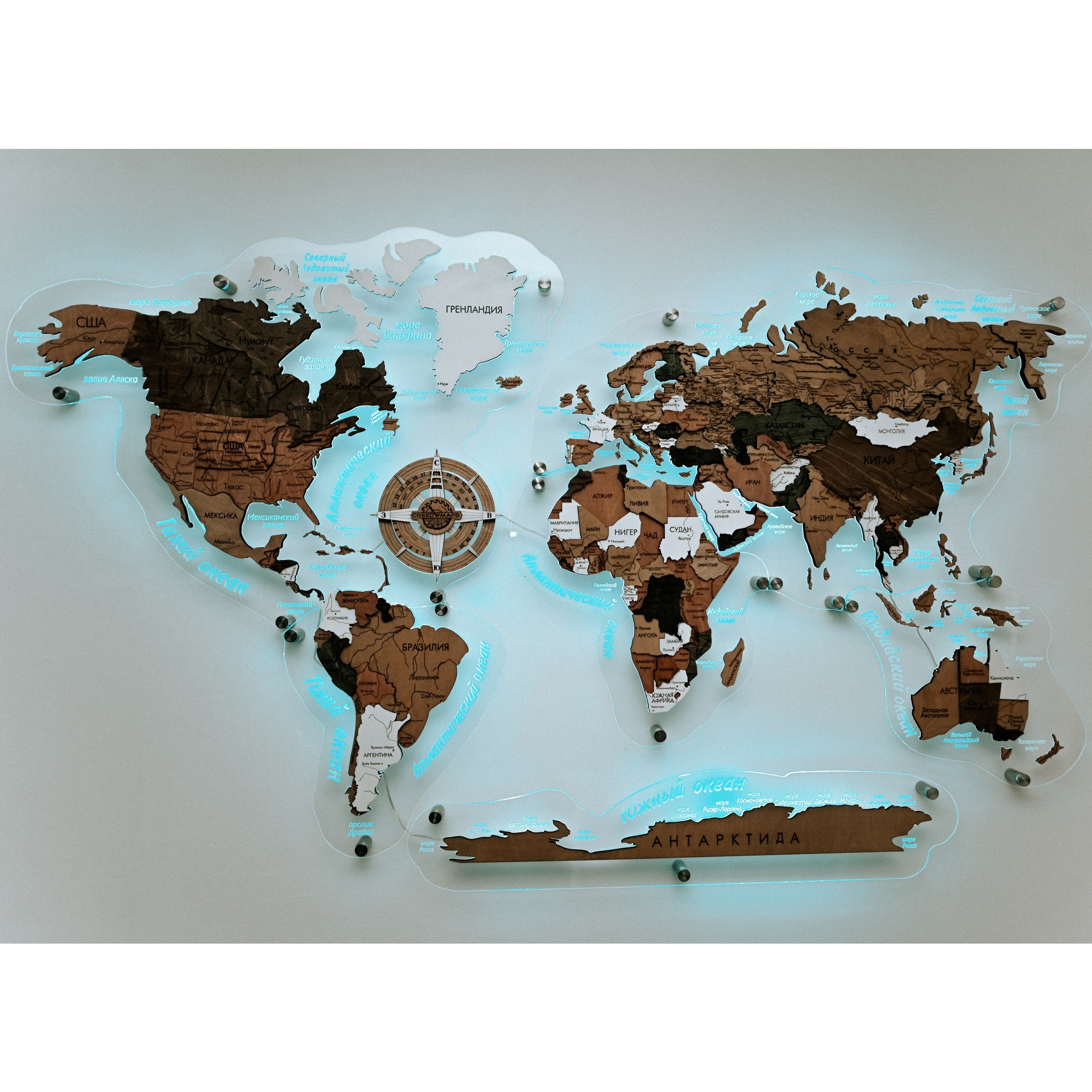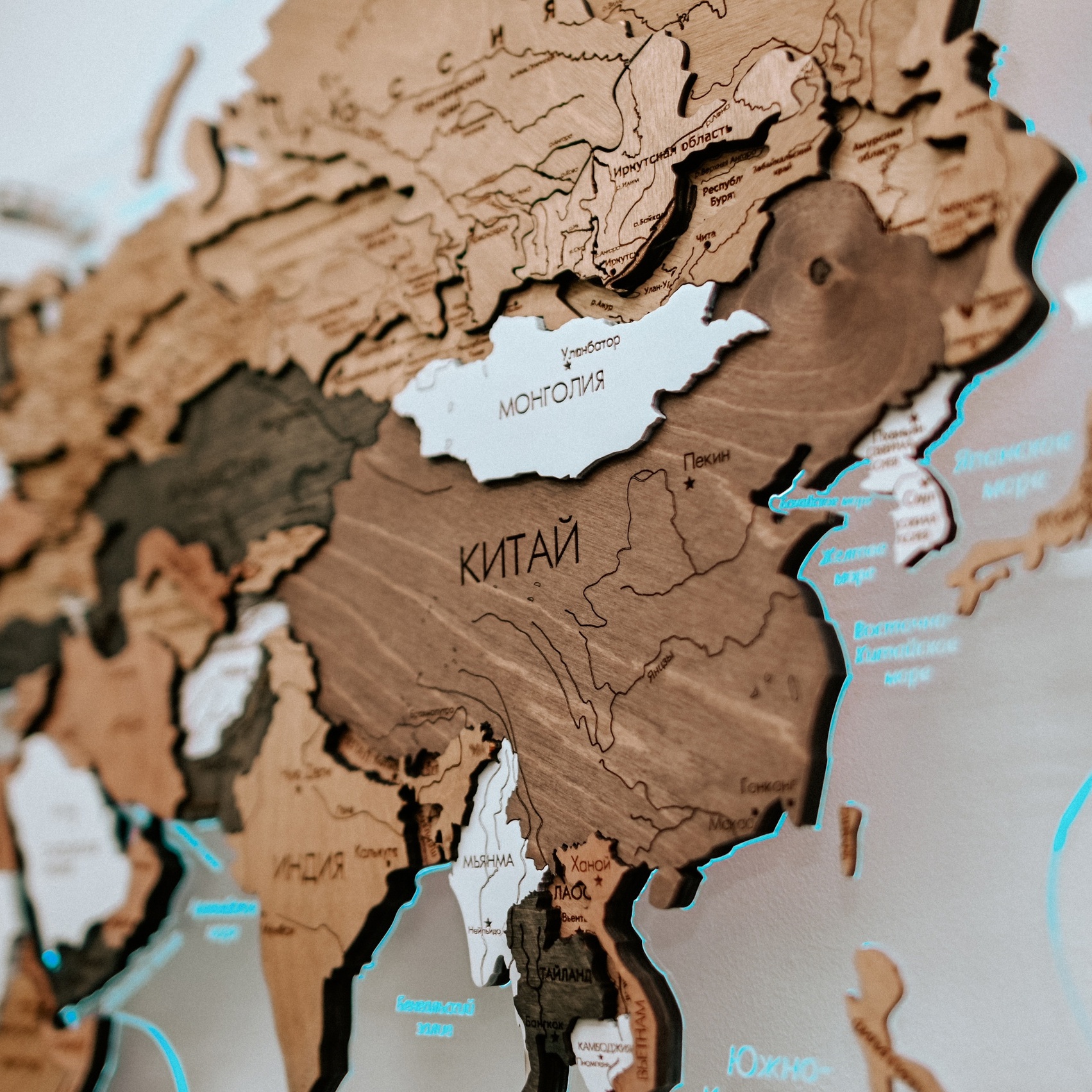 Корпоративная карта мира из ценных пород дерева 3D, на заказ