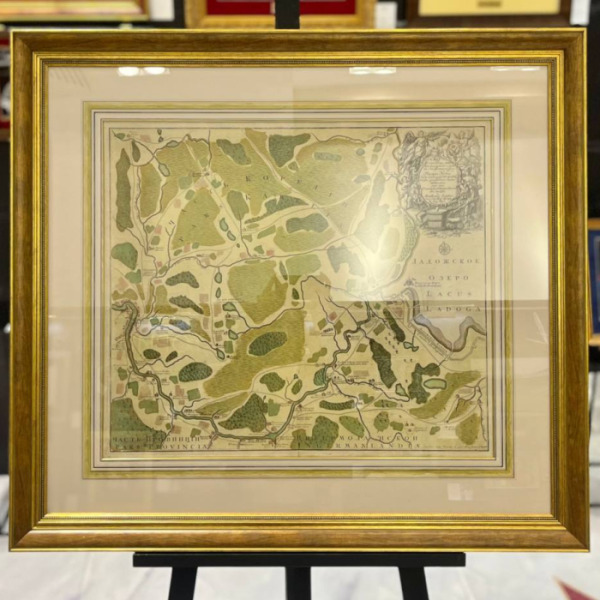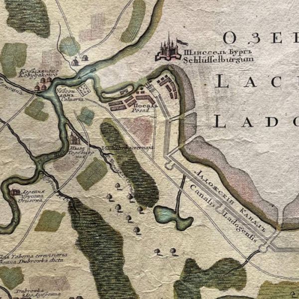 Карта реки Невы, от истоков до впадения Охты, с прилегающими частями Карелии и Ингерманландии. На карте показаны кабаки, населённые пункты с отдельными домами, в том числе Убогий дом, Шлиссельбург, Морье, Мурино, Александро-Невская Лавра и многое другое. Также на карте показаны Невский район и Ржевка-Пороховые нынешнего Санкт Петербурга, которые не попадали на карты города того времени.