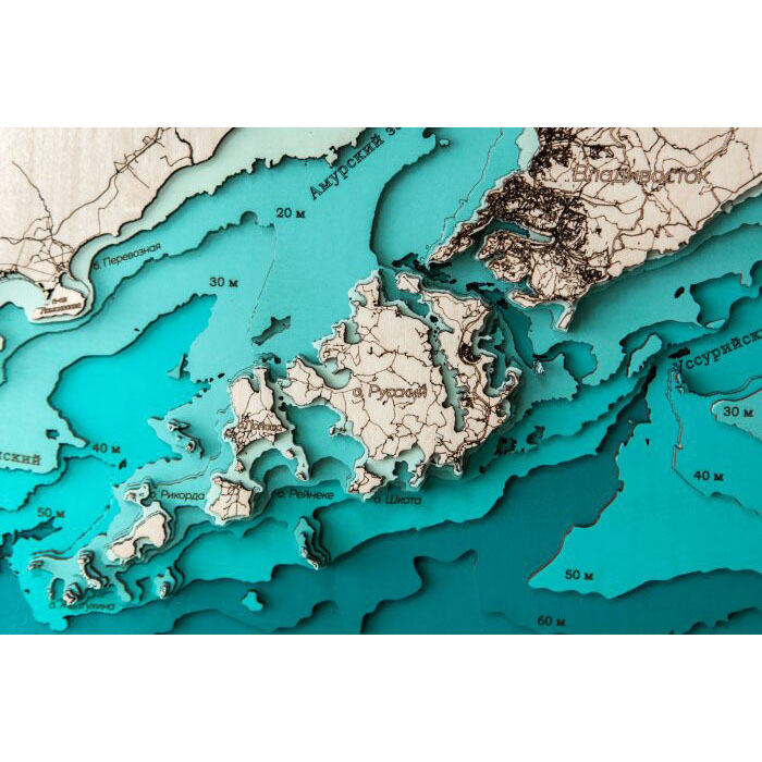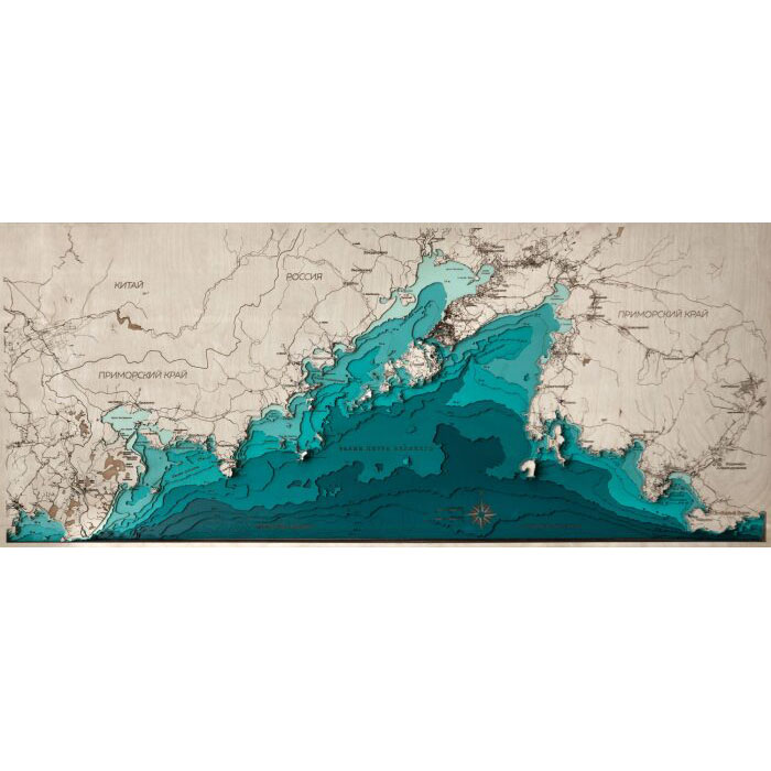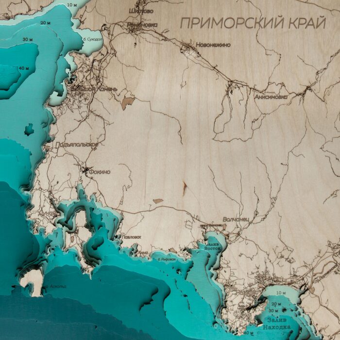 Карта южного побережья Приморского края из дерева, большая, на заказ
