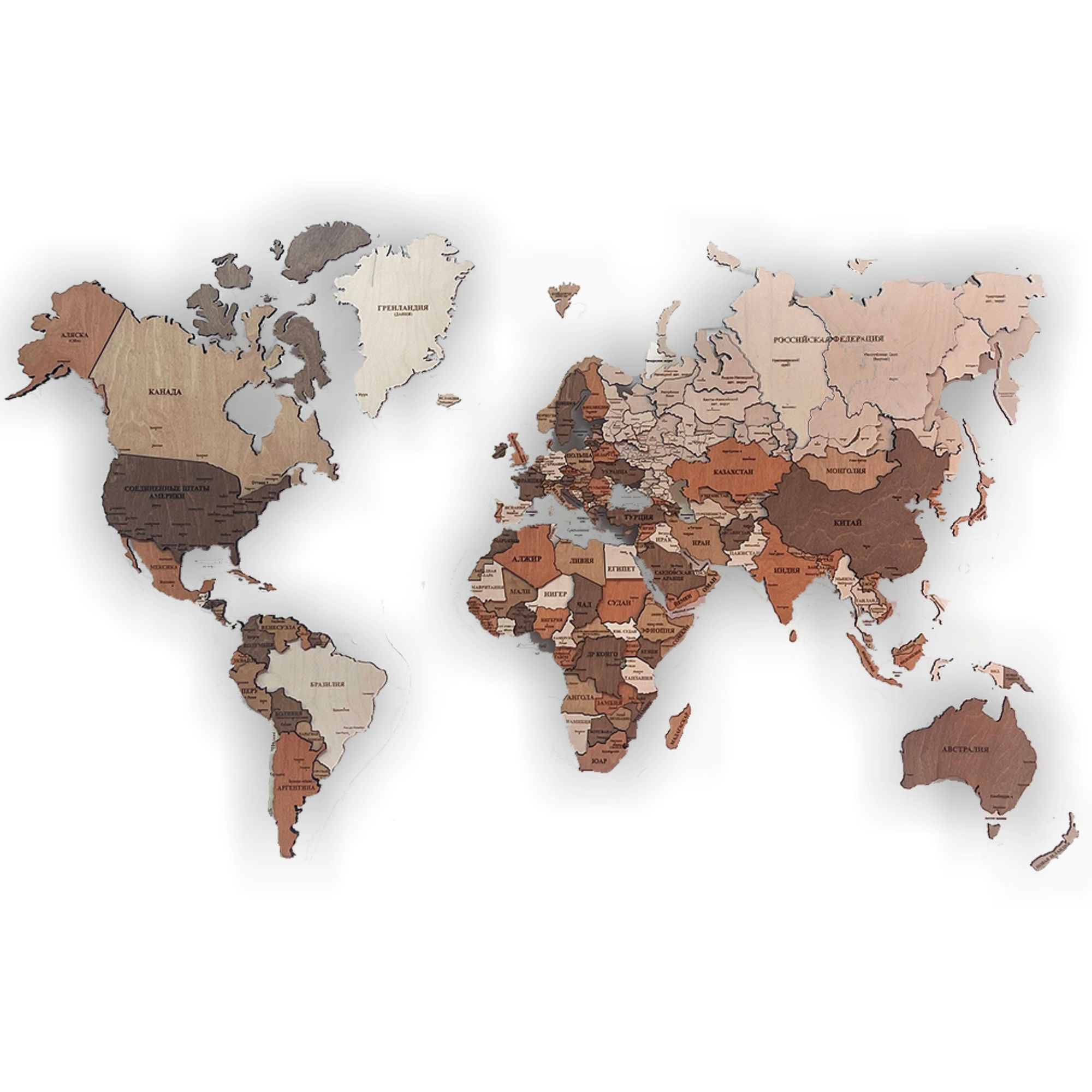 CutwoodКарта мира многоуровневая 3D "Cappuccino" на заказКарта мира многоуровневая 3D "Cappuccino" на заказМатериал — березовая фанера высшего сорта разной толщины (4,6,8,10 мм)