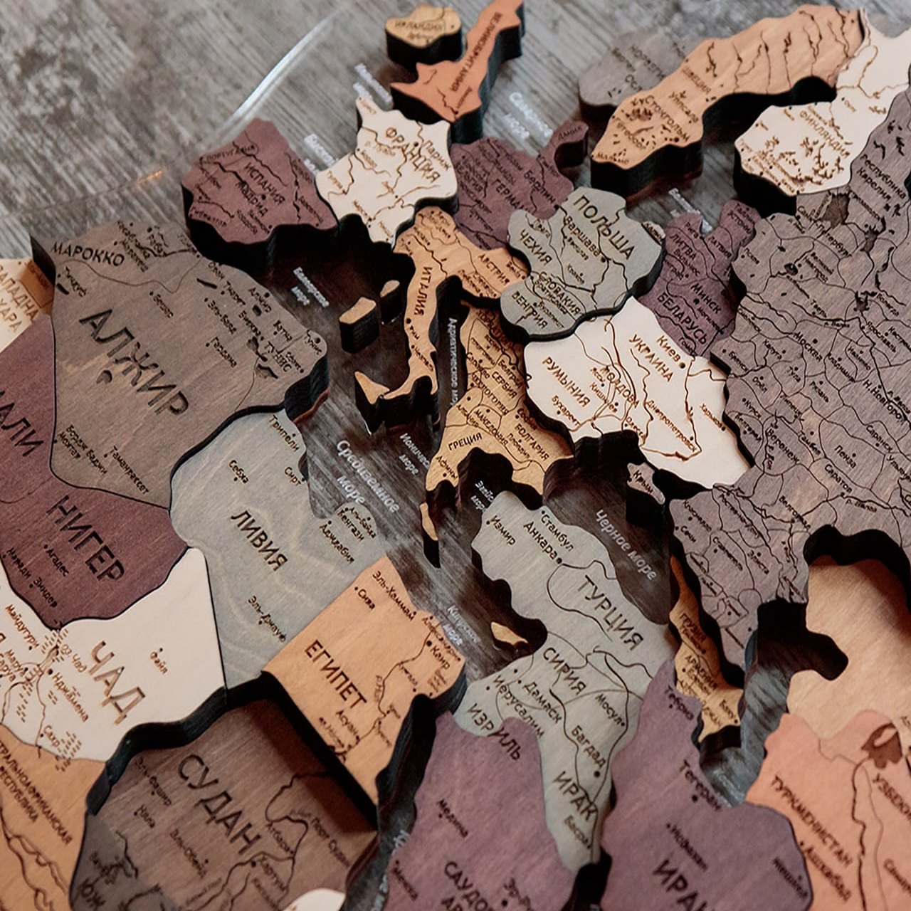 Карта мира, многоуровневая 3D "Darkwood", на заказ