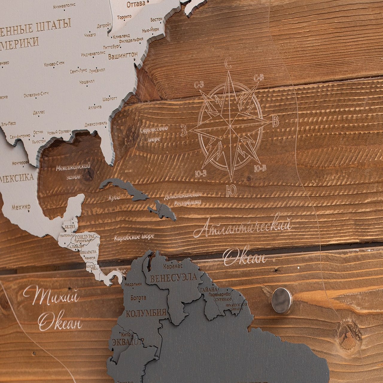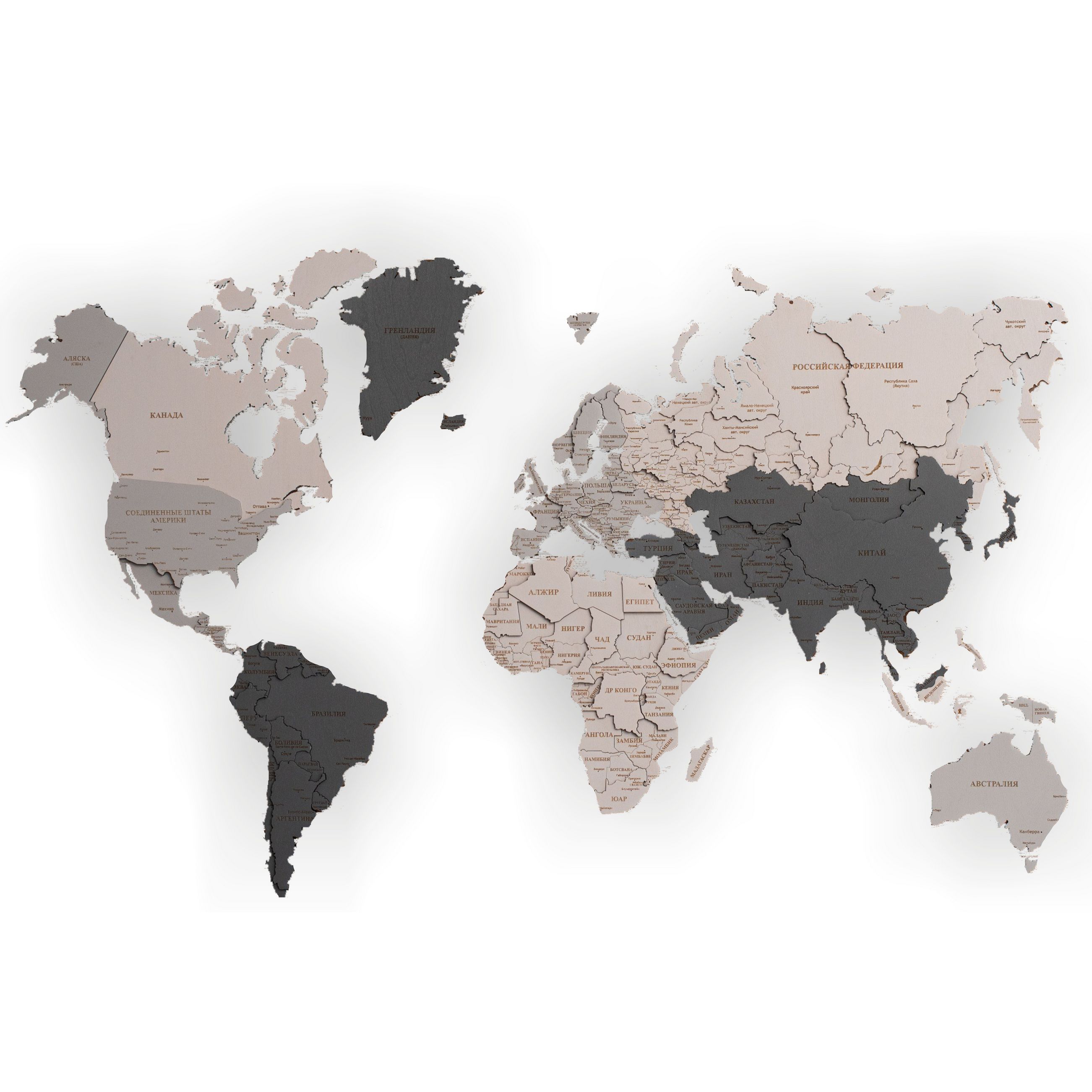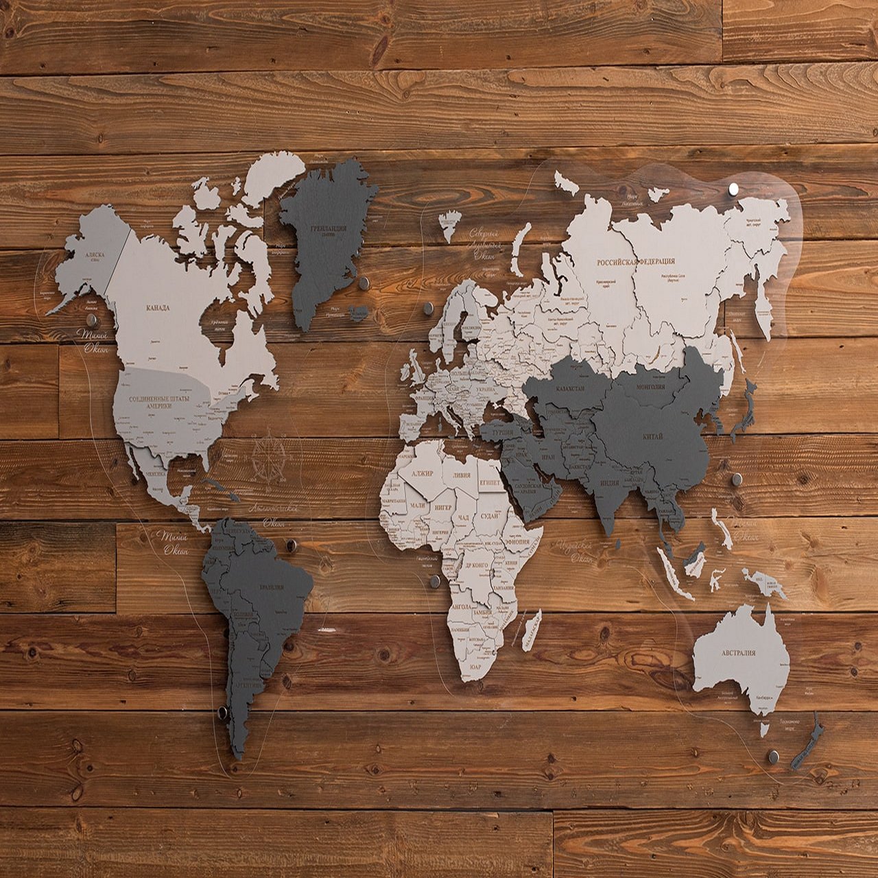 Карта мира, многоуровневая 3D "Silver Moon", на заказ
