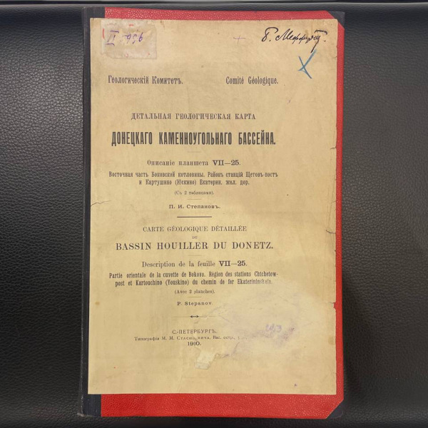 Книга «Детальная геологическая карта Донецкого каменноугольного бассейна» Степанов П.И., Санкт-Петербург, типография М.М. Стасюлевича, 1910 год