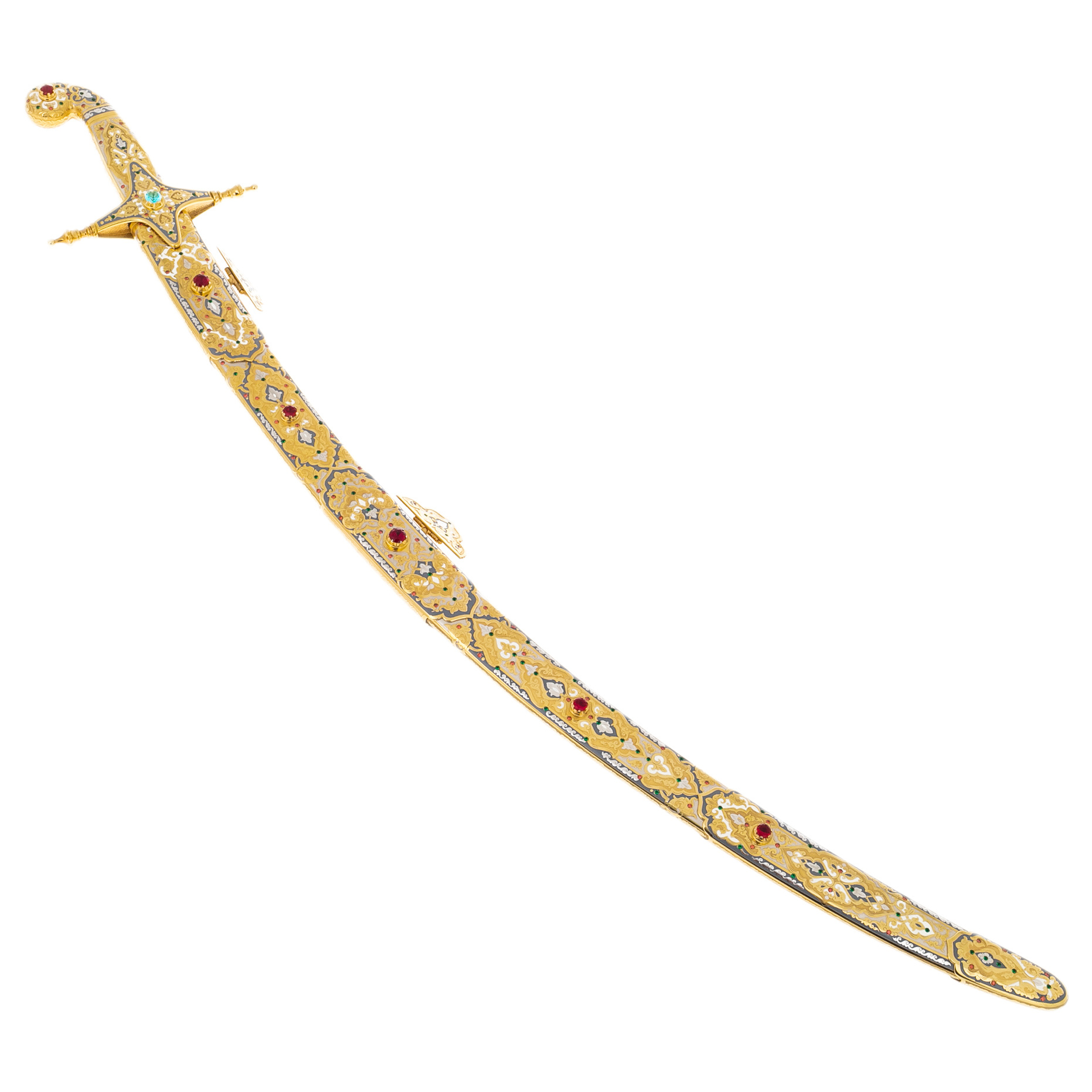 Подарочная сабля "Восточная" с фианитами и кереплением для ремня, Златоуст