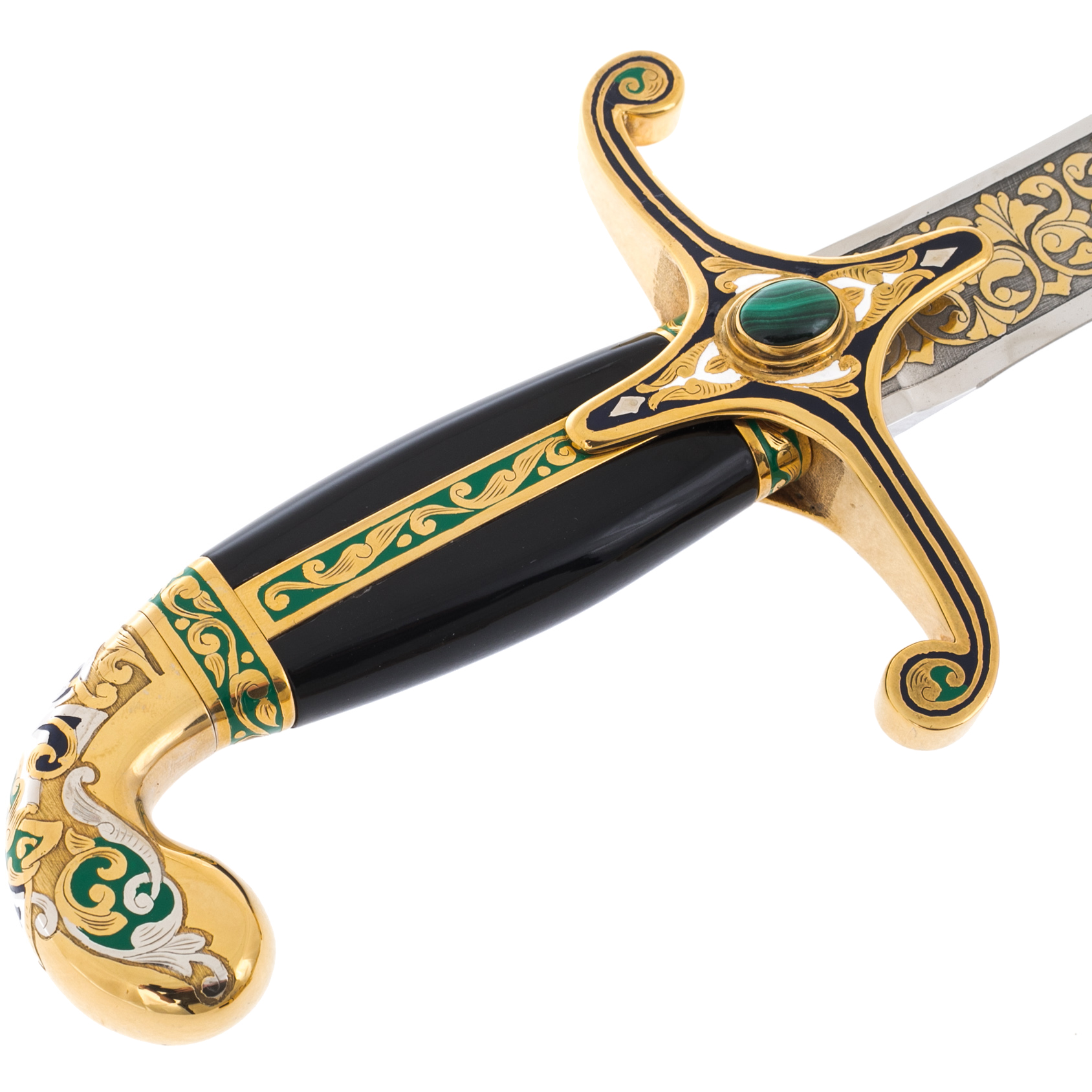 Материалы:латунь, позолота, никель, сталь 95Х18, малахит, лазурит, эмали.