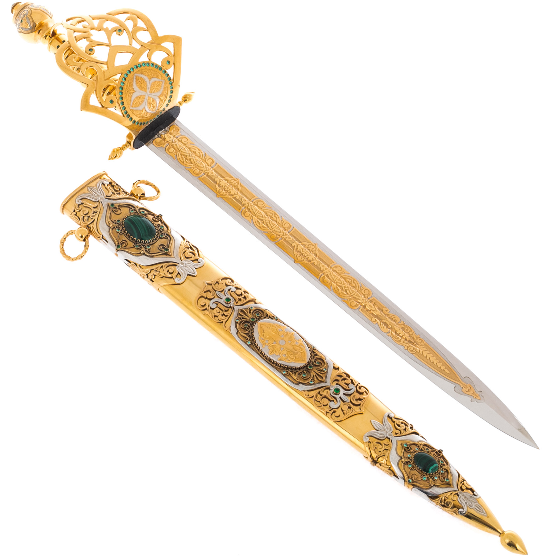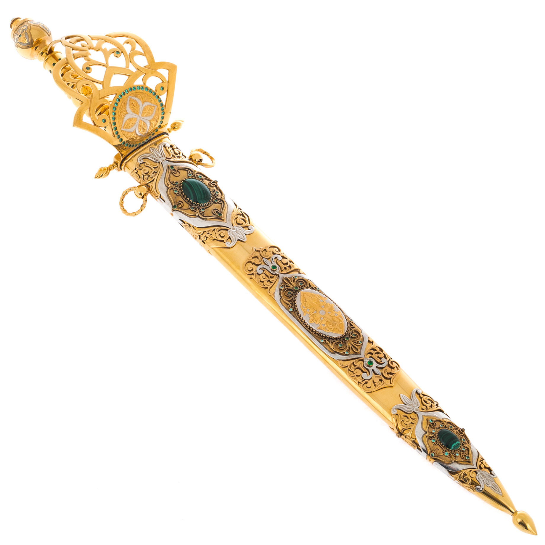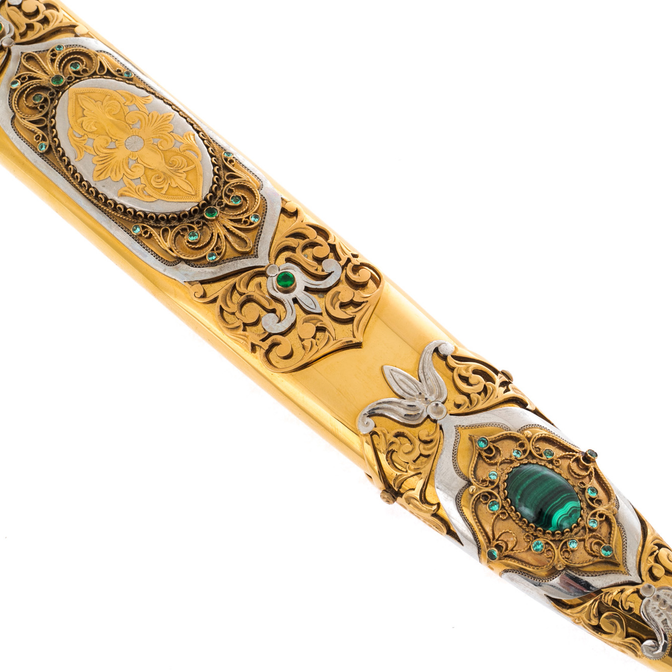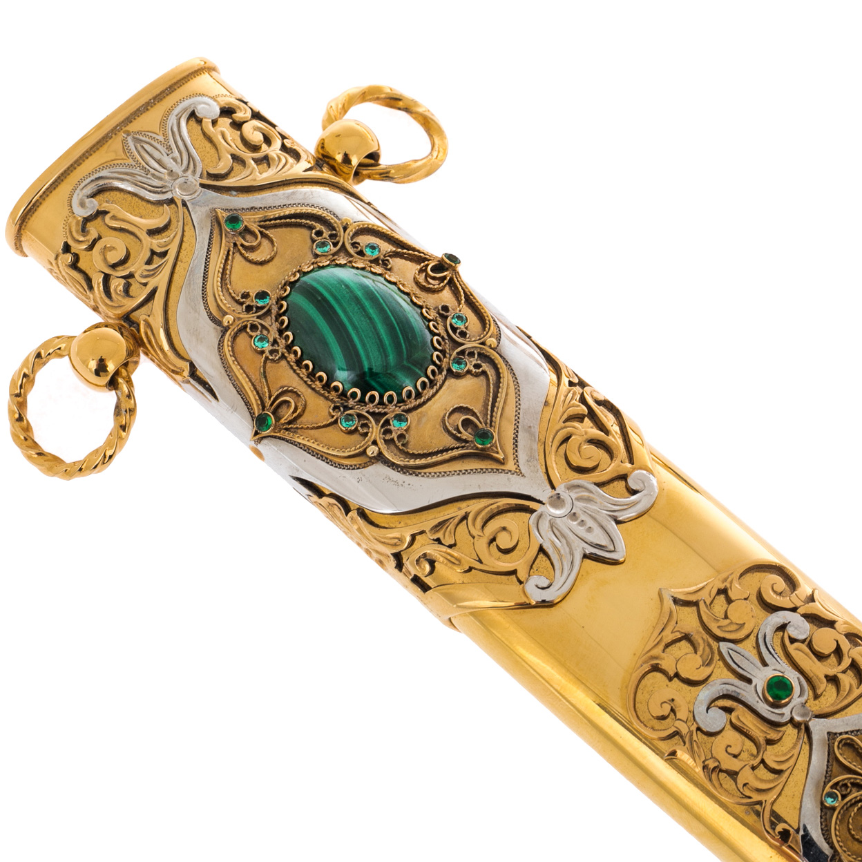 Материалы:малахит, латунь, сталь ЭИ-107, никель, золото.
