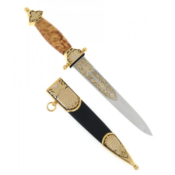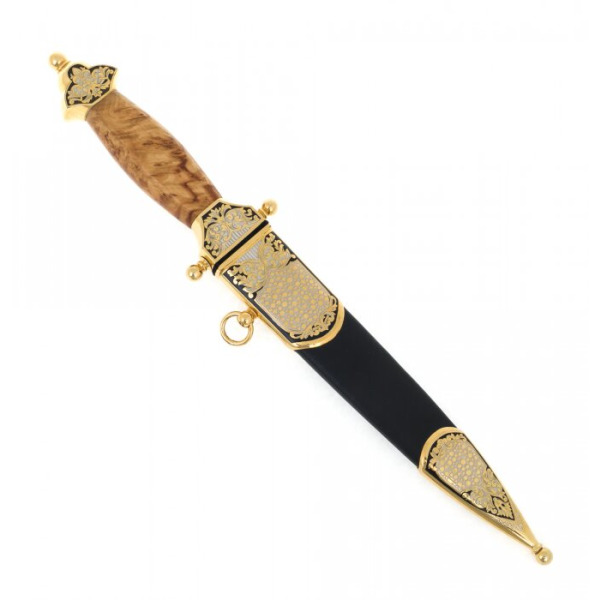 Эта реликвия представлена в элегантной подарочной коробке, обитой изнутри мягкой белоснежной тканью. Такой кинжал — идеальный подарок для того, кто знает цену традициям, уважает искусство и стремится подчеркнуть свое уникальное место в этом мире.