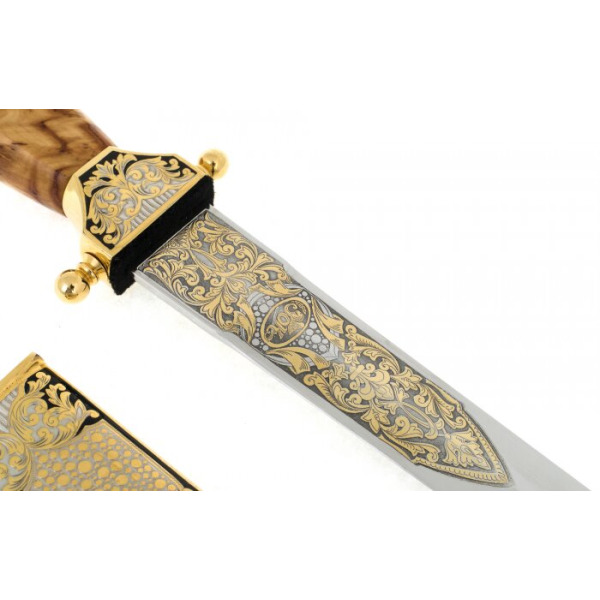 Кинжал "Анелас" ЗлатоустКинжал "Анелас" ЗлатоустС давних времен производством оружия занимались лучшие мастера из Златоуста. Художественные клинки, кинжалы, стилеты, кортики, мечи, шашки и топорики выполнялись вручную из стали высокого качества в технике Златоустовской гравюры на металле. Наши оружейники прекрасно разбираются в технике гравировки, травления, серебрения и золочения.