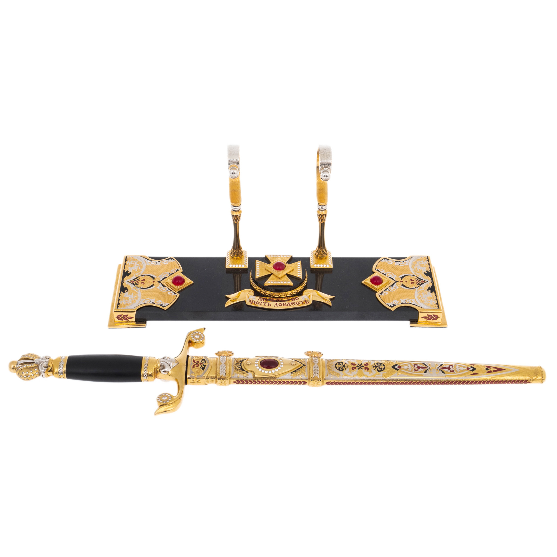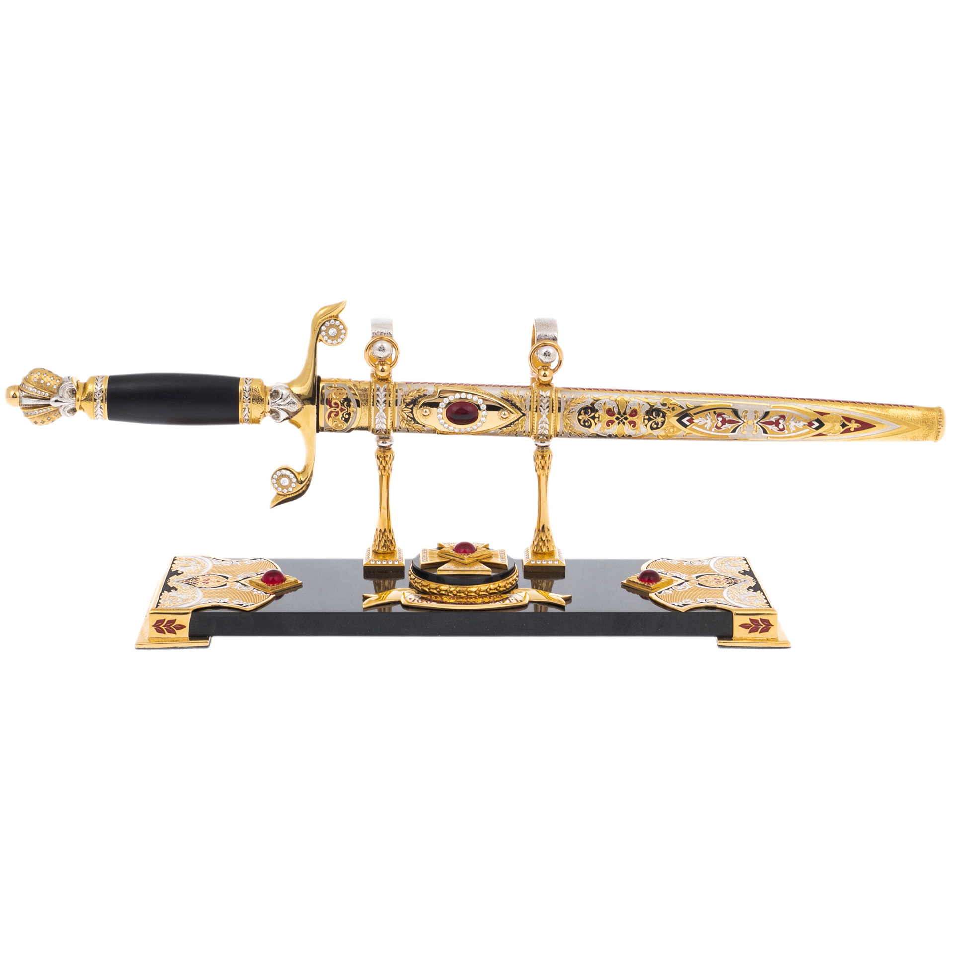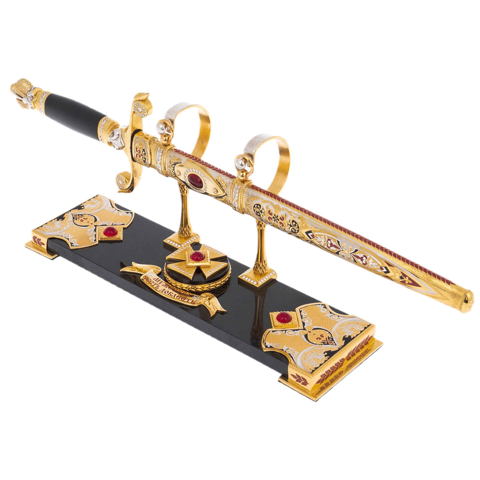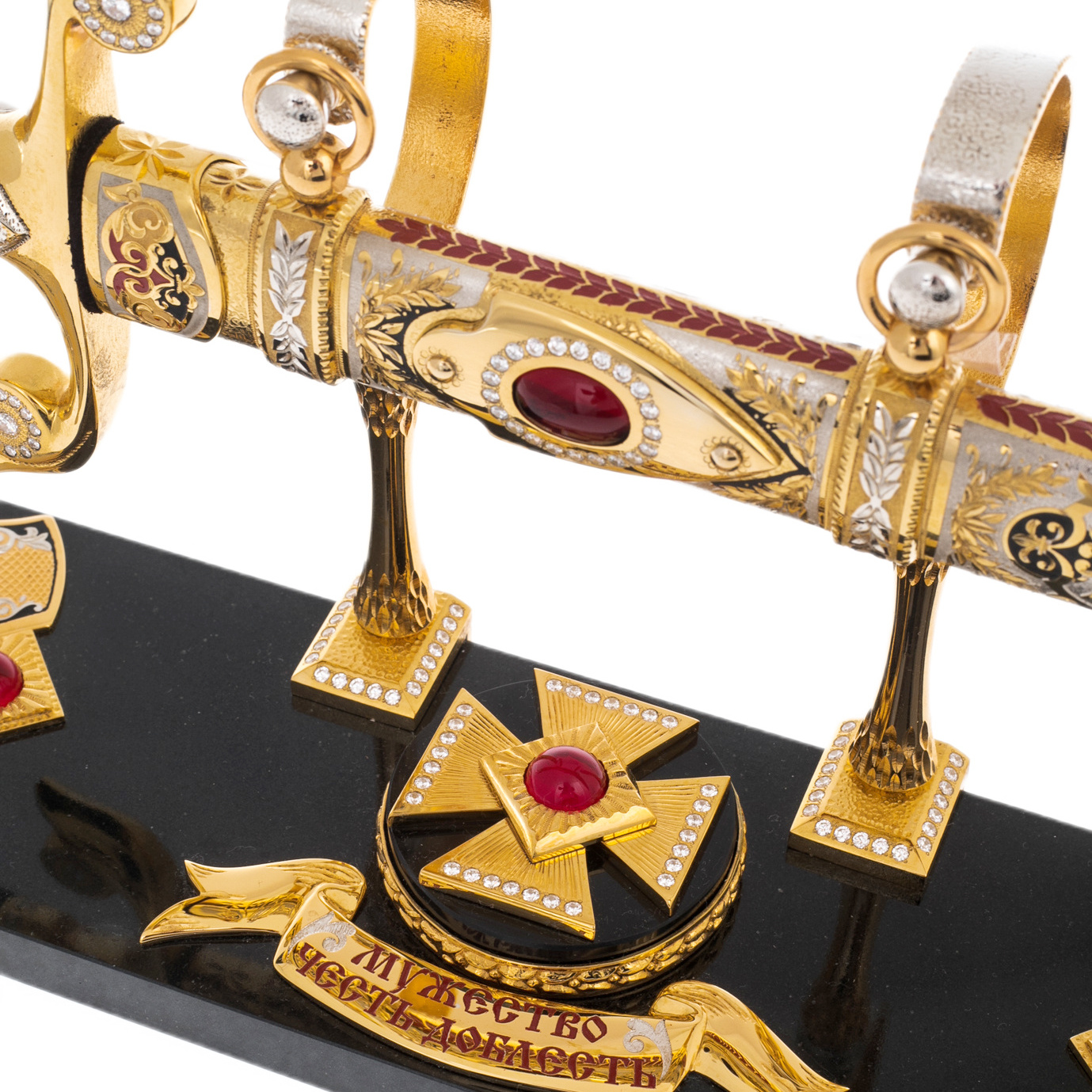 Кортик декоративный "Мужество. Честь. Доблесть" на подставке, Златоуст