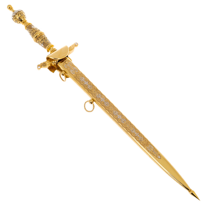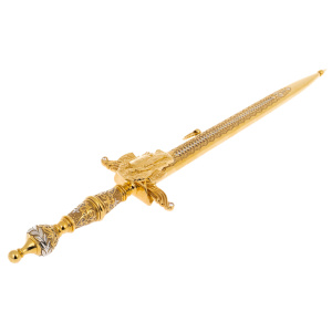 Кортик "Державный" ЗлатоустКортик "Державный" ЗлатоустС давних времен производством оружия занимались лучшие мастера из Златоуста. Художественные клинки, кинжалы, стилеты, кортики, мечи, шашки и топорики выполнялись вручную из стали высокого качества в технике Златоустовской гравюры на металле. Наши оружейники прекрасно разбираются в технике гравировки, травления, серебрения и золочения.