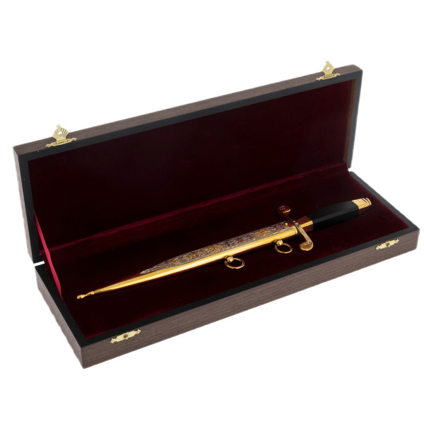 Этот кортик — не просто коллекционный предмет, а знак привилегии, дарящий своему владельцу прикосновение к вечному. Он вписывается в интерьер кабинета, наполненного знаками силы и влияния, дополняет образ человека, которому подвластны решения и который знает: истинная власть начинается с деталей.