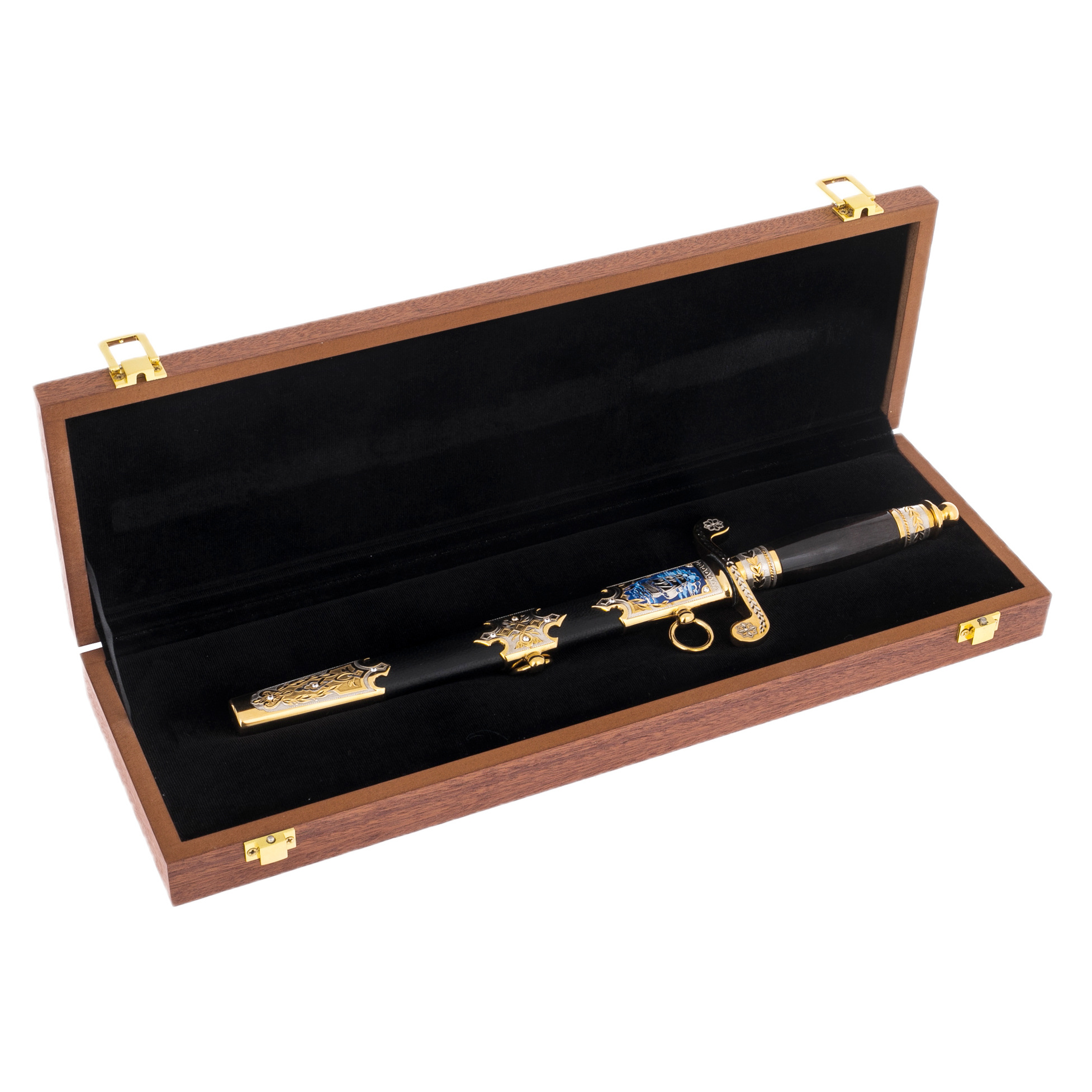 Деликатный баланс силы и элегантности, воплощенный в золоченом лезвии и благородном черном фоне, делает этот сувенирный морской кортик поистине знаковым предметом. В каждой детали читается история воинской доблести, морских побед и несокрушимой воли – качество, достойное настоящих лидеров.