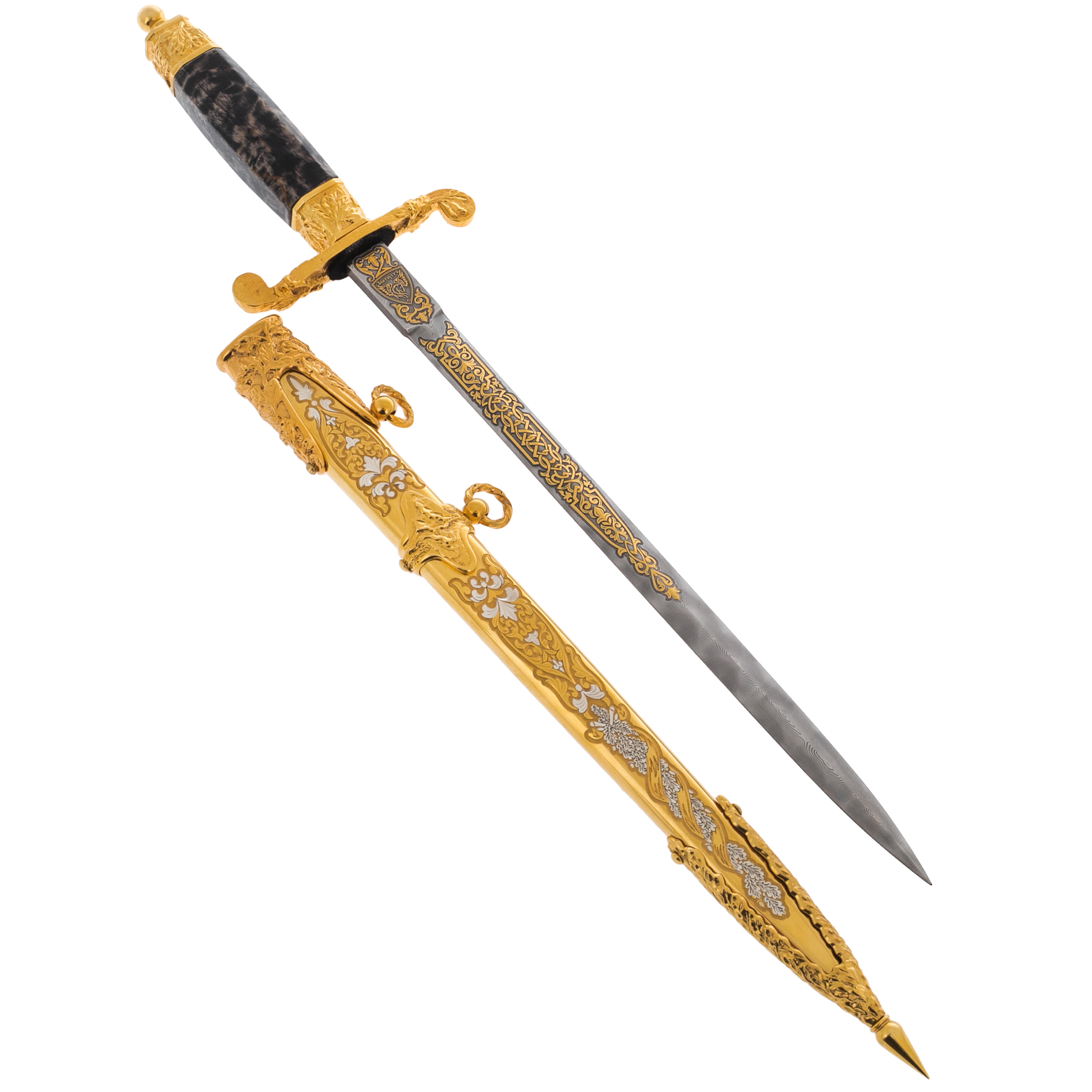 Материал рукояти:латунь, никель, дерево, дамасская сталь.