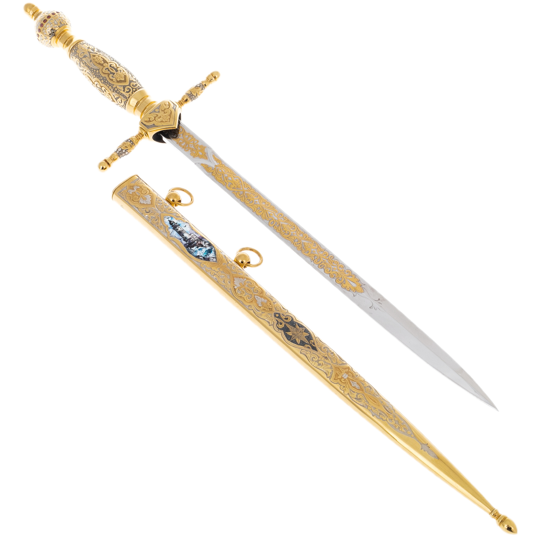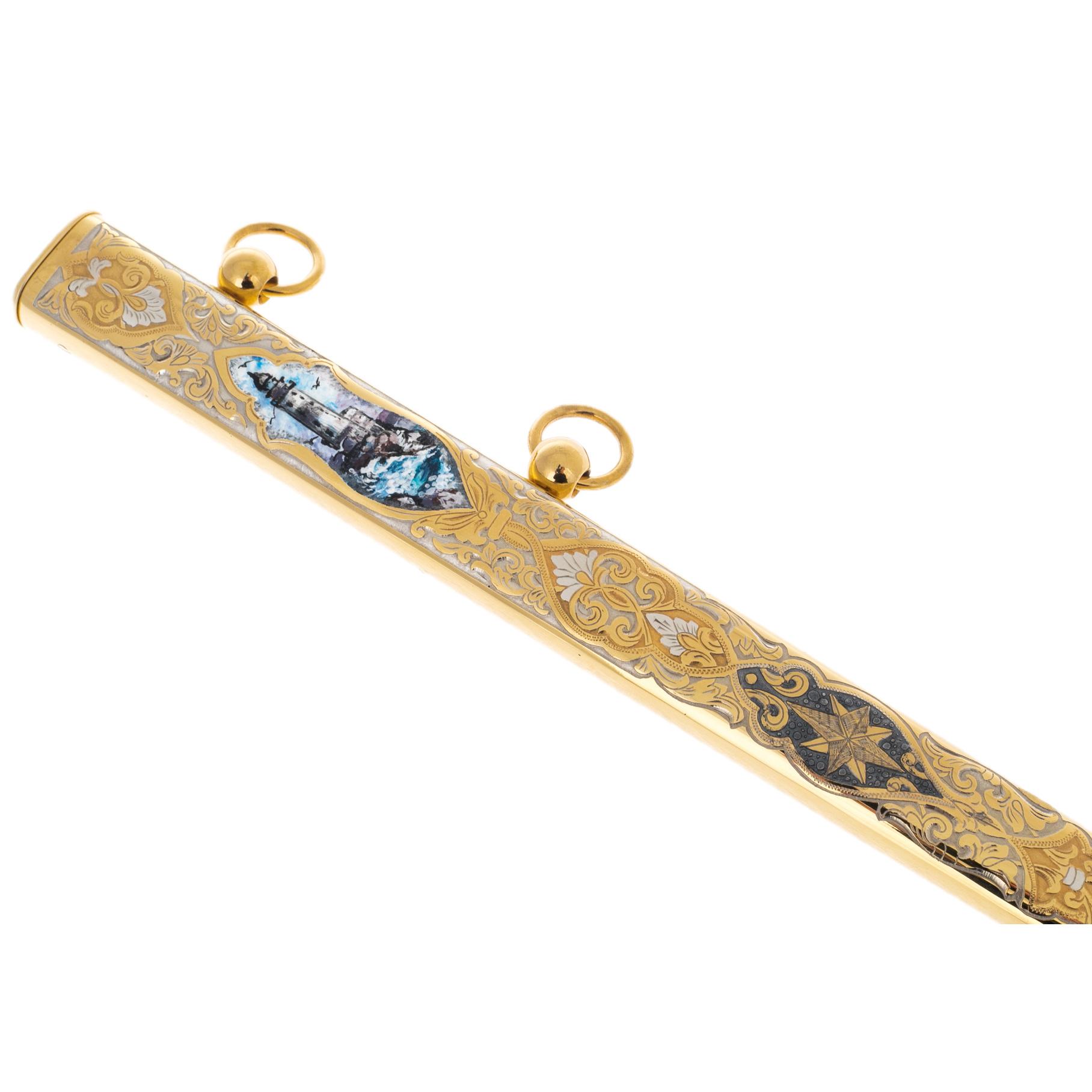 Материалы:латунь, клинок - сталь 40Х10С2М, австрийские фианиты, эмали.