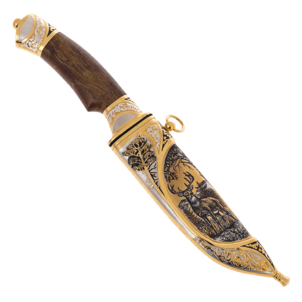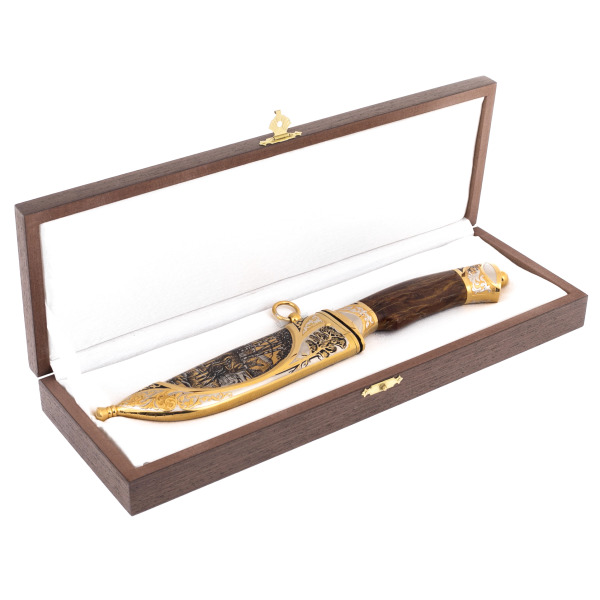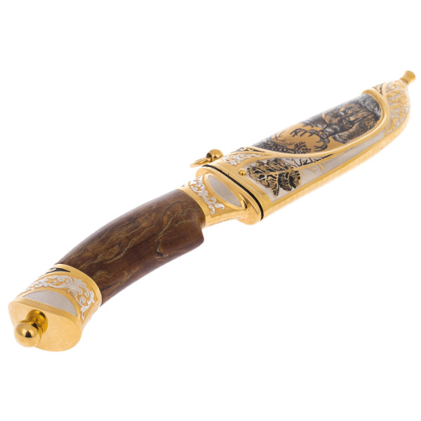 В этом произведении искусства, созданном мастерами Златоуста, каждый элемент воплощает силу, изысканность и связь с природой. Этот сувенирный нож — не просто утилитарный предмет, он подчеркивает статус, вкус и внутреннюю мощь своего обладателя.