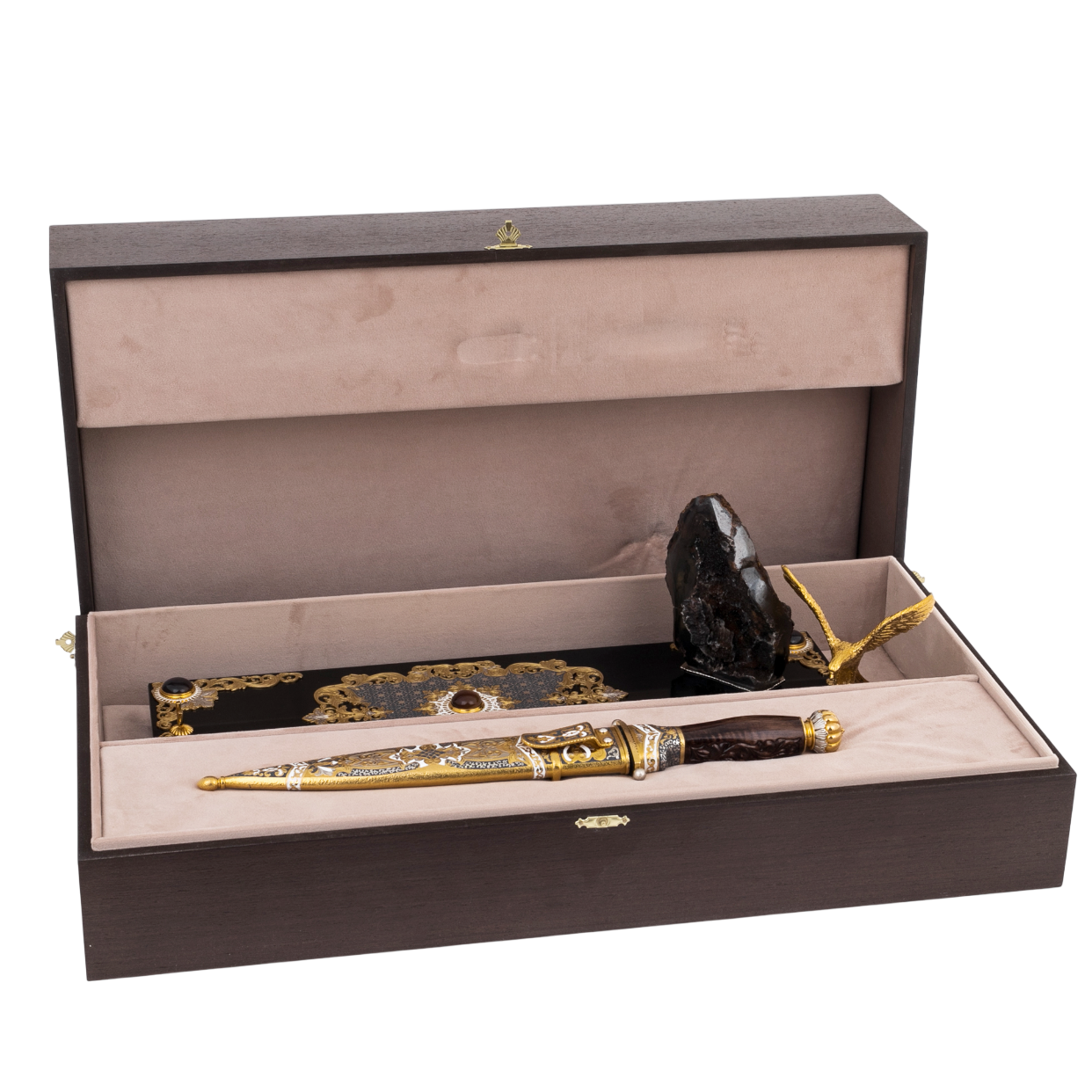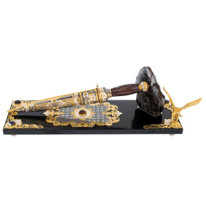 Такой подарок предназначается для коллекционера, ценящего искусство высокой металлопластики, человека, воспринимающего статус не как декларируемое, а как внутреннее состояние. На рабочем столе или в личном кабинете этот нож являет собой знак силы характера и стратегического мышления, создавая вокруг владельца ауру человека, умеющего выбирать редкое, дорогое и достойное.
