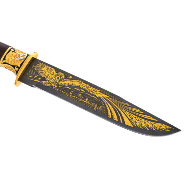 Нож "Сокол" ЗлатоустНож "Сокол" ЗлатоустС давних времен производством оружия занимались лучшие мастера из Златоуста. Художественные клинки, кинжалы, стилеты, кортики, мечи, шашки и топорики выполнялись вручную из стали высокого качества в технике Златоустовской гравюры на металле. Наши оружейники прекрасно разбираются в технике гравировки, травления, серебрения и золочения.