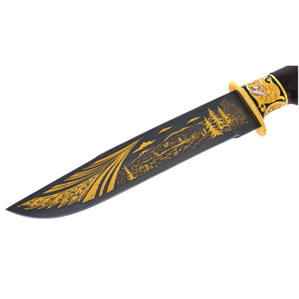 Нож охотничий "Отвага"Нож охотничий "Отвага"С давних времен производством оружия занимались лучшие мастера из Златоуста. Художественные клинки, кинжалы, стилеты, кортики, мечи, шашки и топорики выполнялись вручную из стали высокого качества в технике Златоустовской гравюры на металле. Наши оружейники прекрасно разбираются в технике гравировки, травления, серебрения и золочения.