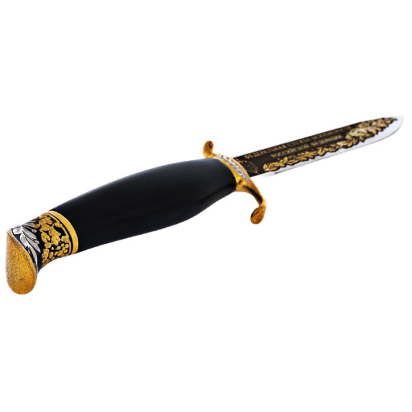 Нож украшенный "Осетр" ЗлатоустНож украшенный "Осетр" ЗлатоустС давних времен производством оружия занимались лучшие мастера из Златоуста. Художественные клинки, кинжалы, стилеты, кортики, мечи, шашки и топорики выполнялись вручную из стали высокого качества в технике Златоустовской гравюры на металле. Наши оружейники прекрасно разбираются в технике гравировки, травления, серебрения и золочения. Мы предлагаем вам лучшие образцы подарочного оружия, каждое из которых является шедевром оружейного мастерства. Дорогое коллекционное оружие подчеркивает высокий статус его владельца. Вы можете украсить сувенир оригинальным поздравлением или заказать рисунок по своему эскизу.