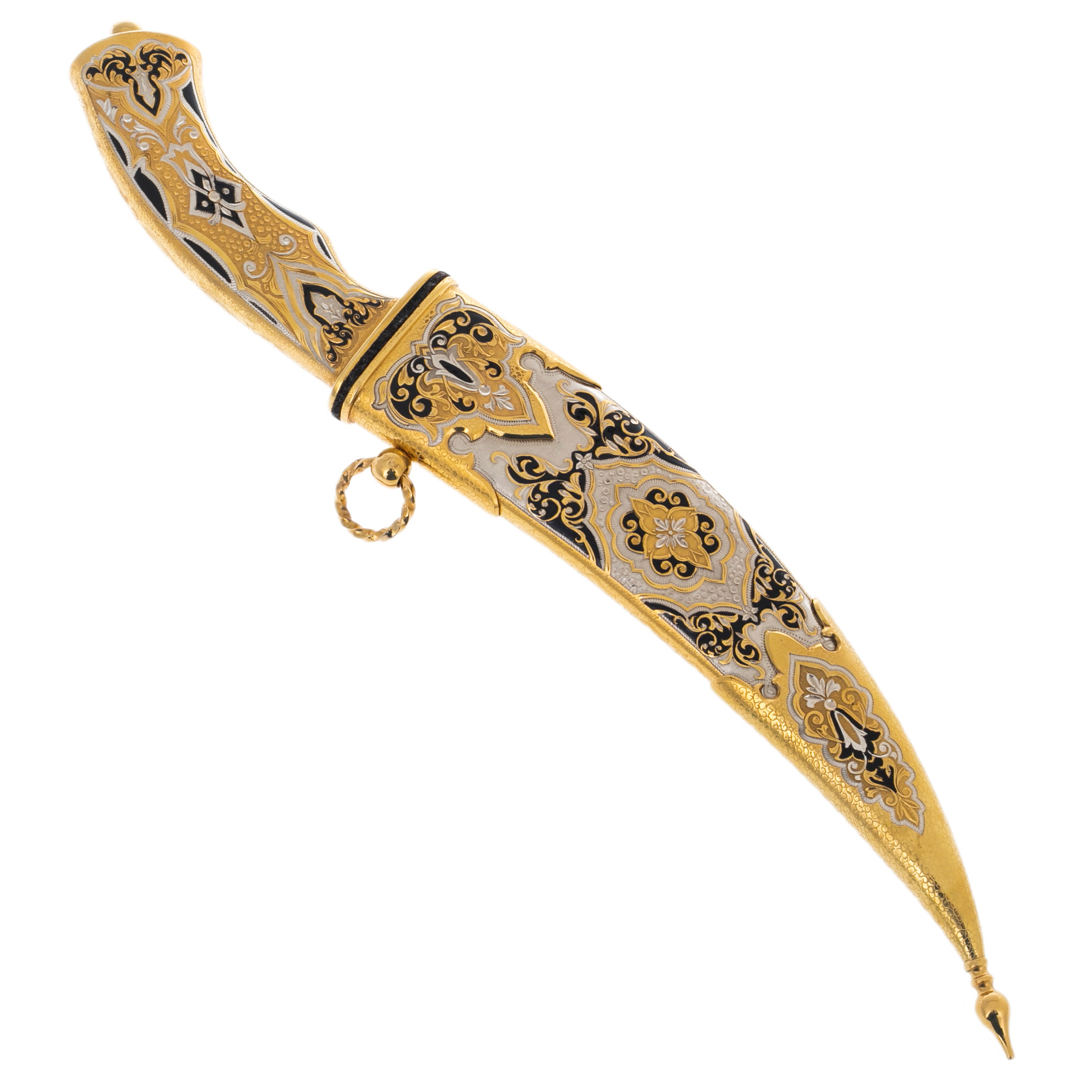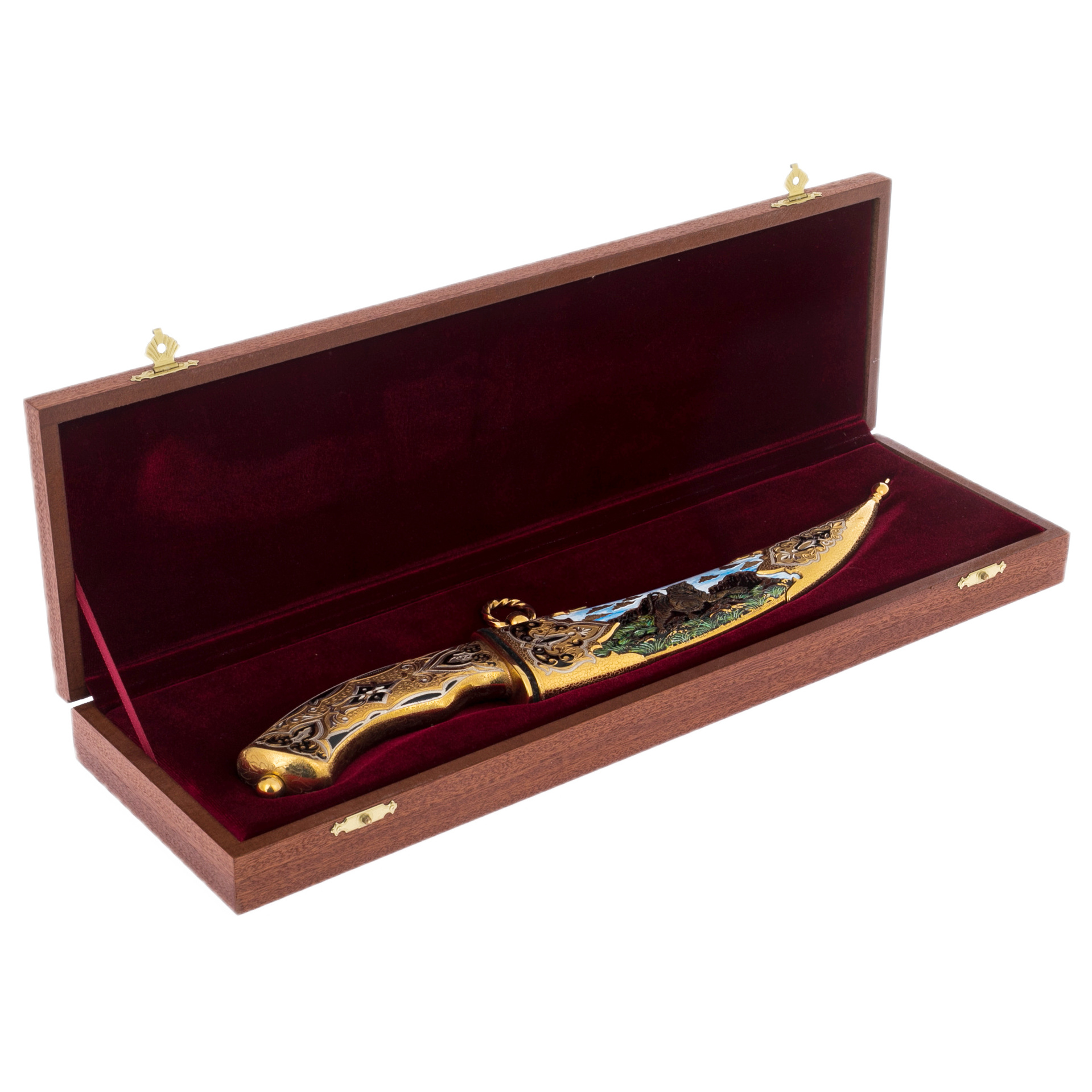 Нож заключён в футляр, отделанный бархатом, который подчеркивает его статус редкой реликвии. Обладать таким предметом — значит владеть силой, способной преодолеть самые сложные препятствия, и мудростью, позволяющей оставаться истинным хозяином своей судьбы.