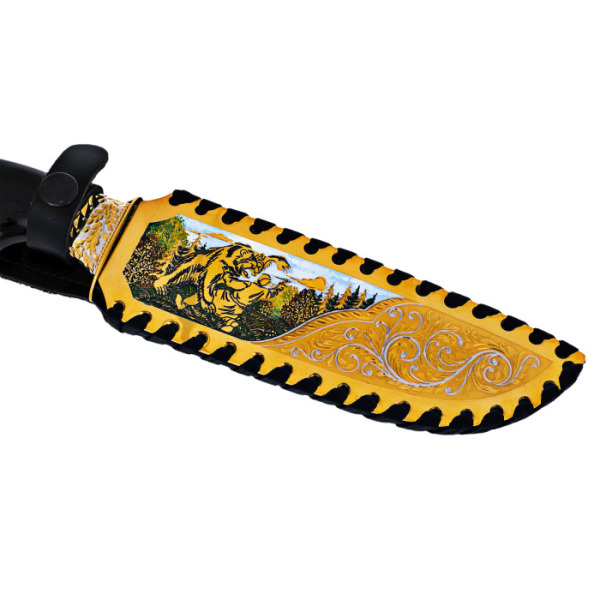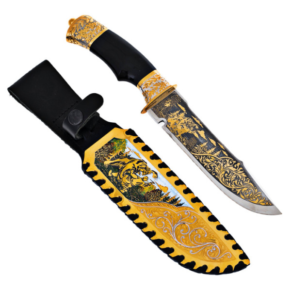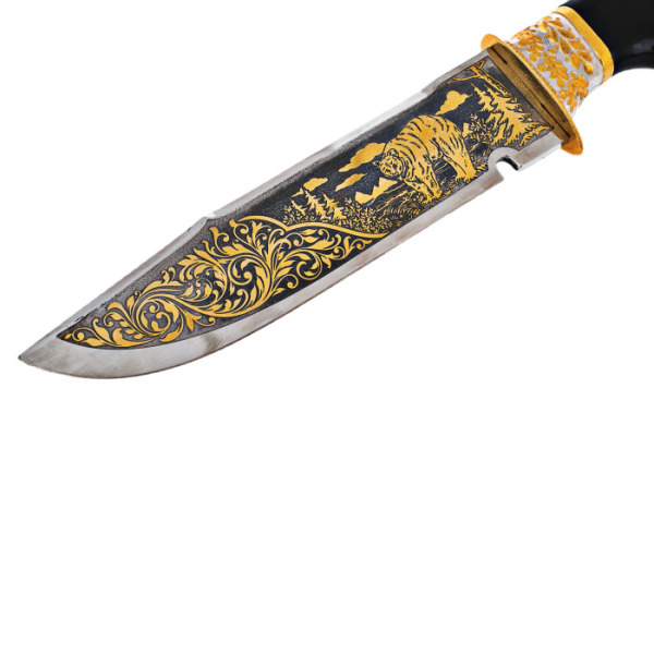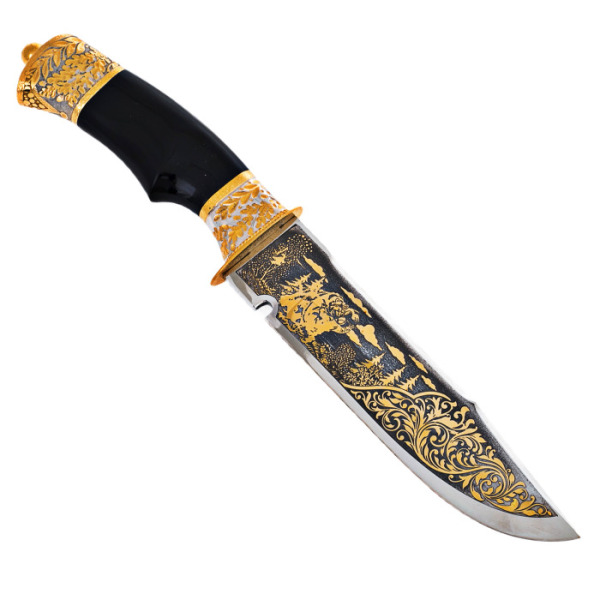 Нож охотничий "Отвага"Нож охотничий "Отвага"С давних времен производством оружия занимались лучшие мастера из Златоуста. Художественные клинки, кинжалы, стилеты, кортики, мечи, шашки и топорики выполнялись вручную из стали высокого качества в технике Златоустовской гравюры на металле. Наши оружейники прекрасно разбираются в технике гравировки, травления, серебрения и золочения.