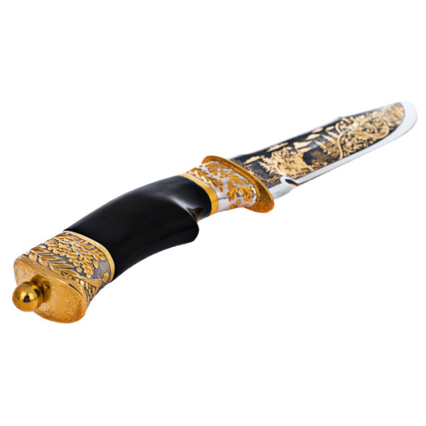 Нож украшенный "Осетр" ЗлатоустНож украшенный "Осетр" ЗлатоустС давних времен производством оружия занимались лучшие мастера из Златоуста. Художественные клинки, кинжалы, стилеты, кортики, мечи, шашки и топорики выполнялись вручную из стали высокого качества в технике Златоустовской гравюры на металле. Наши оружейники прекрасно разбираются в технике гравировки, травления, серебрения и золочения. Мы предлагаем вам лучшие образцы подарочного оружия, каждое из которых является шедевром оружейного мастерства. Дорогое коллекционное оружие подчеркивает высокий статус его владельца. Вы можете украсить сувенир оригинальным поздравлением или заказать рисунок по своему эскизу.